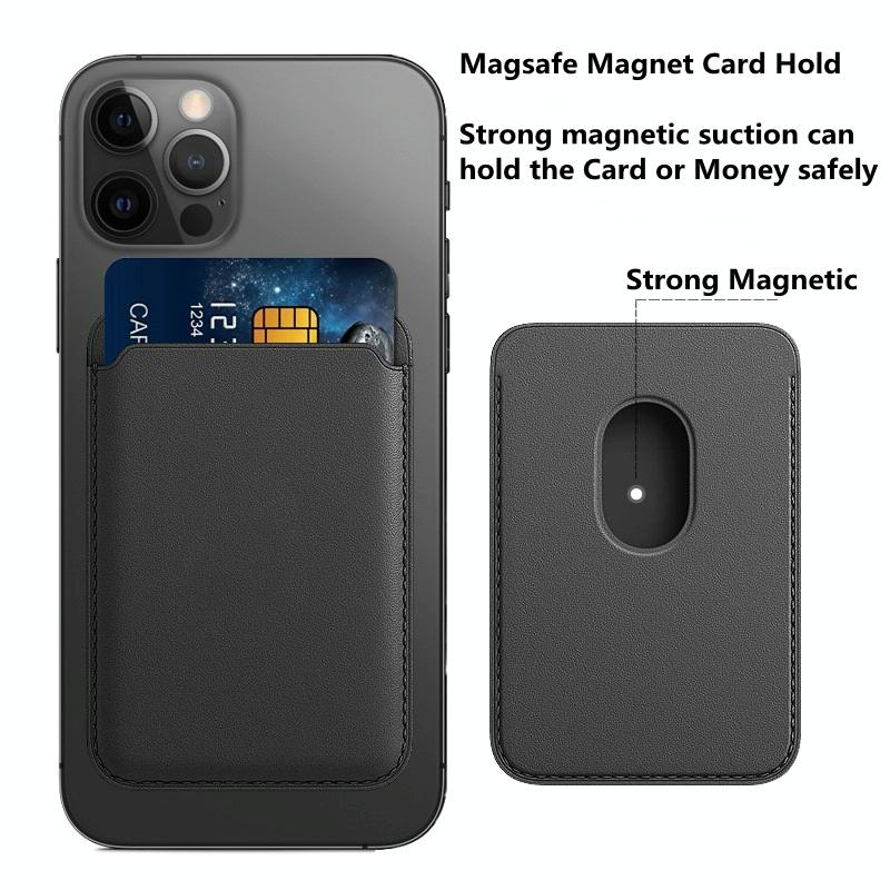 This product is a leather card case designed for iPhone with magnetic attraction features. It can hold up to three cards and offers a stylish and functional solution for carrying essential cards conveniently.