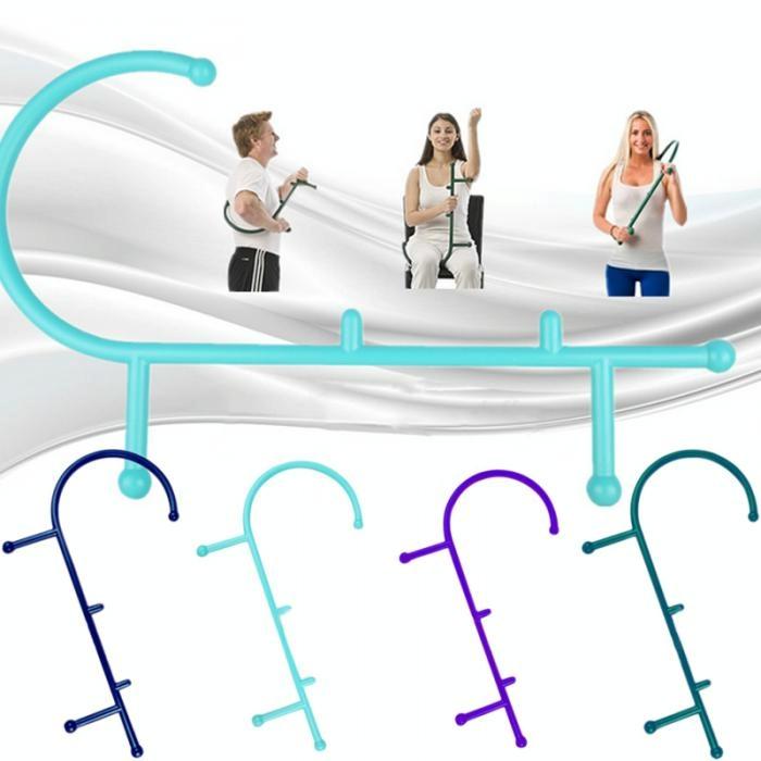 This manual neck massager is designed to provide targeted relief for trigger points and muscle tension. Made from durable PA6GF material, it features a convex massage head that effectively reaches difficult areas such as the back and hips. Weighing 440 grams, it utilizes leverage principles to enhance the massage experience, making it suitable for self-use and muscle relaxation.