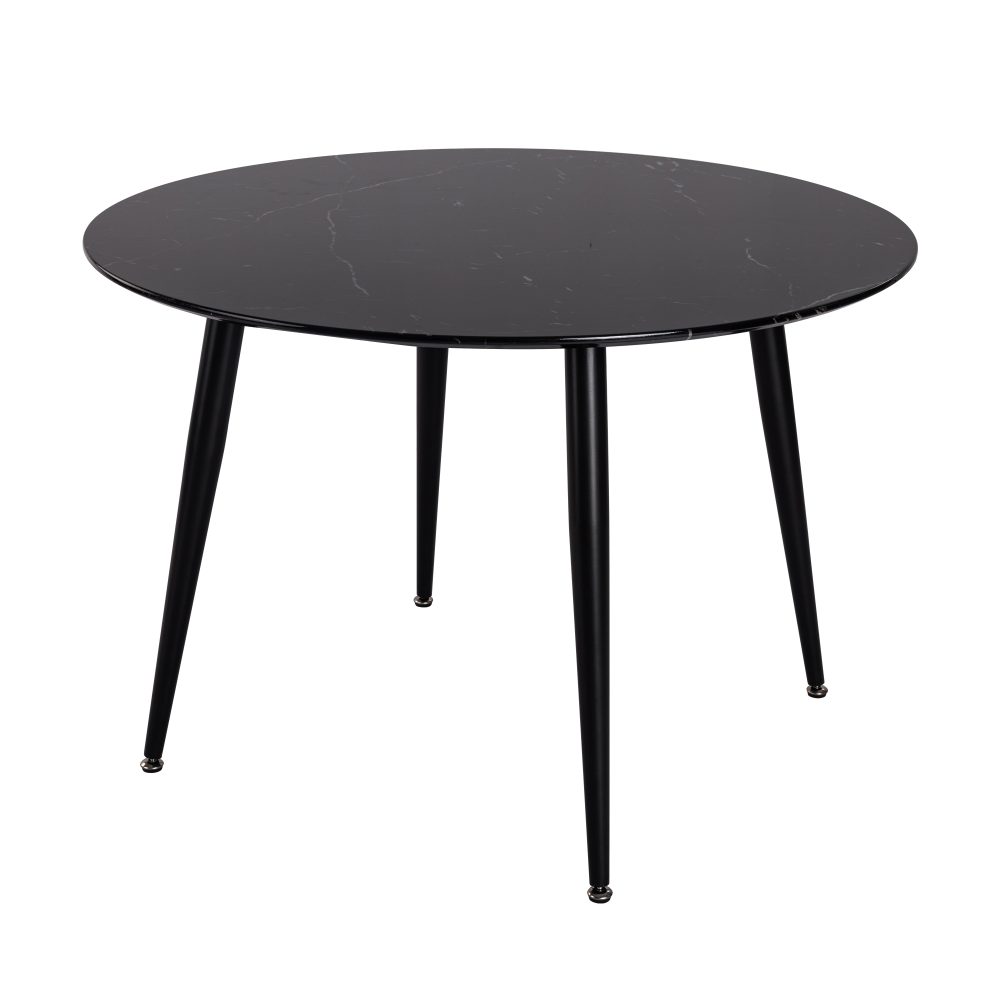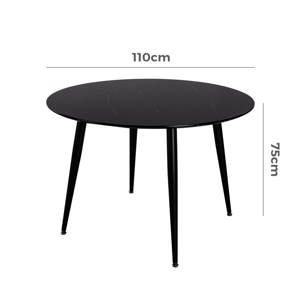 This round dining table features a medieval-inspired design with a smooth, attractive marble-effect surface. Its simple yet elegant appearance makes it easy to complement various dining environments, creating a pleasant space for meals and gatherings.