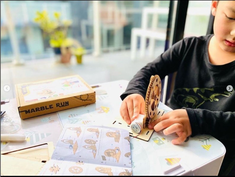 This marble run model is a self-assembly construction set designed to provide engaging entertainment and educational value. It features a flat-pack design with laser-cut plywood components, powered by a battery motor to create mesmerizing perpetual motion. The set encourages hands-on building, coordination, and organizational skills, making it suitable for hobbyists and learners alike.