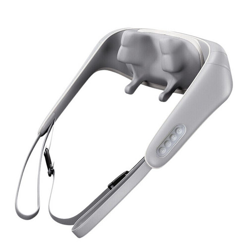 This massager is designed to provide deep, soothing heat and a relaxing massage experience for the neck and shoulders. It features simulated hand grip and kneading techniques, covering key acupoints to relieve muscle tension and pain. The device is ergonomic, wearable, and suitable for use on various parts of the body, including shoulders, neck, calves, waist, and thighs. It offers a quiet operation and a removable, washable cover for hygiene and convenience.
