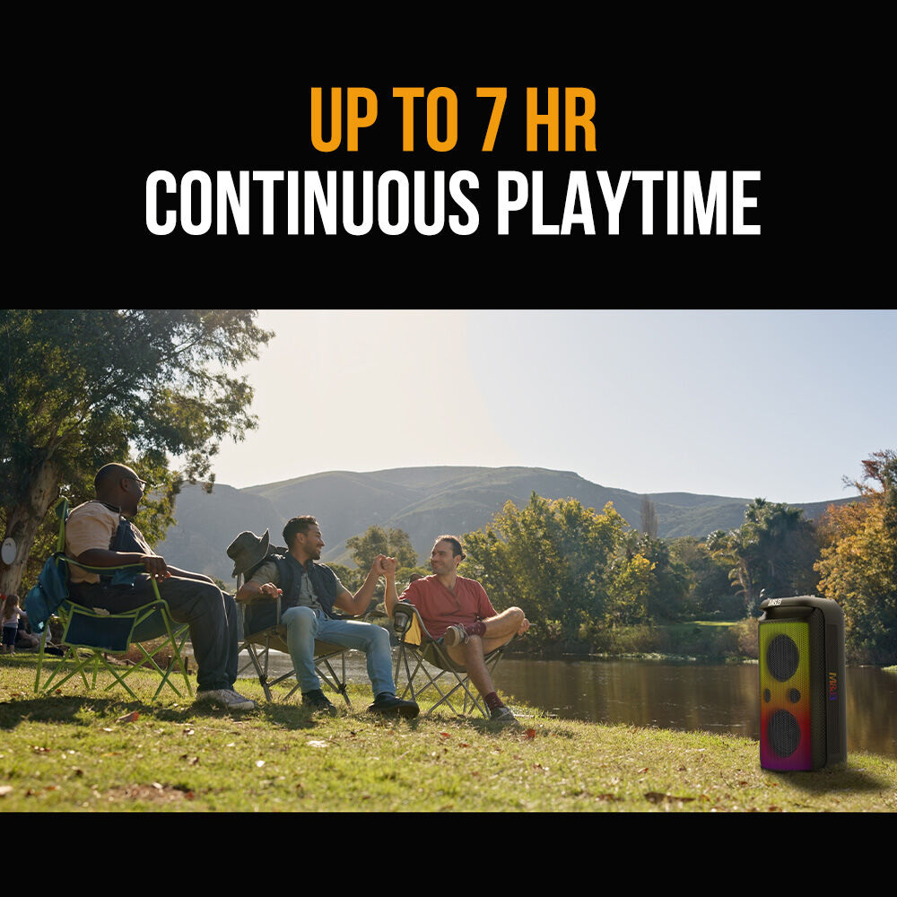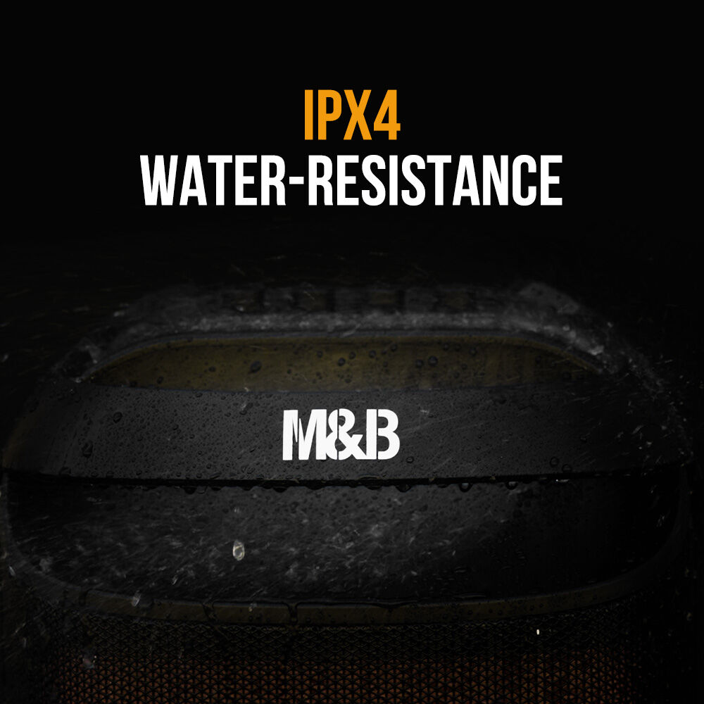 M&B Portable Splash Proof 120W Bluetooth Party Speaker with Karaoke Microphone, IPX4, TWS Pairing, Multi-Input, Lithium Battery, RGB, USB Charging