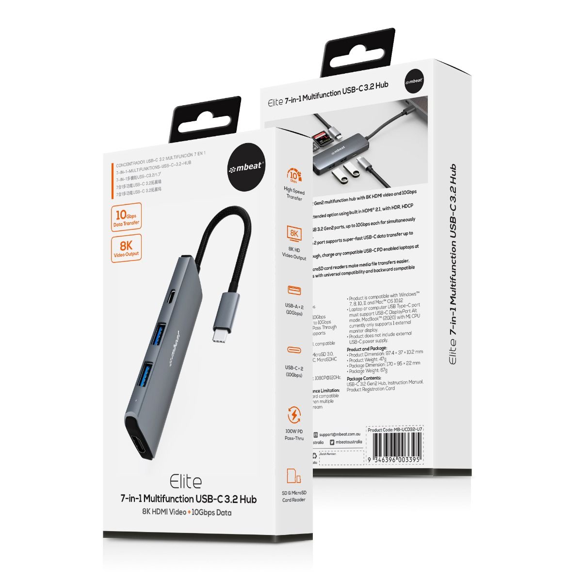 mbeat 7-in-1 USB-C 3.2 Gen2 Hub with 8K Video, 10Gbps Data – Space Grey