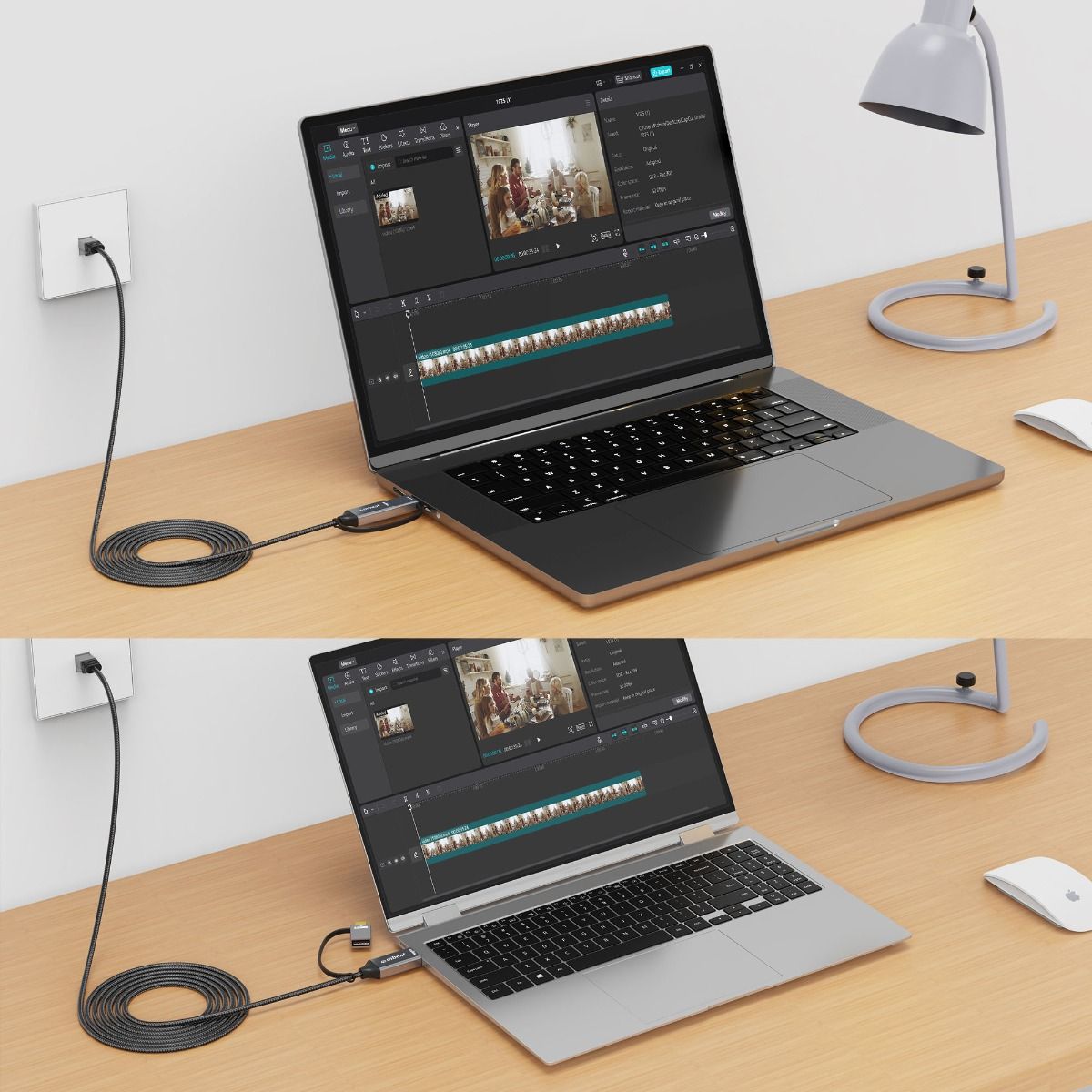 This Ethernet cable features dual connectivity options, supporting both USB-A and USB-C interfaces. It is designed for high-speed wired internet access, making it suitable for various devices including laptops and PCs. The cable is built for durability with a nylon-braided exterior and gold-plated connectors, ensuring reliable performance over time. Easy to use with plug-and-play functionality, it provides a stable and fast network connection without the need for drivers. Compatible with multiple operating systems, it is ideal for home, office, and on-the-go use.