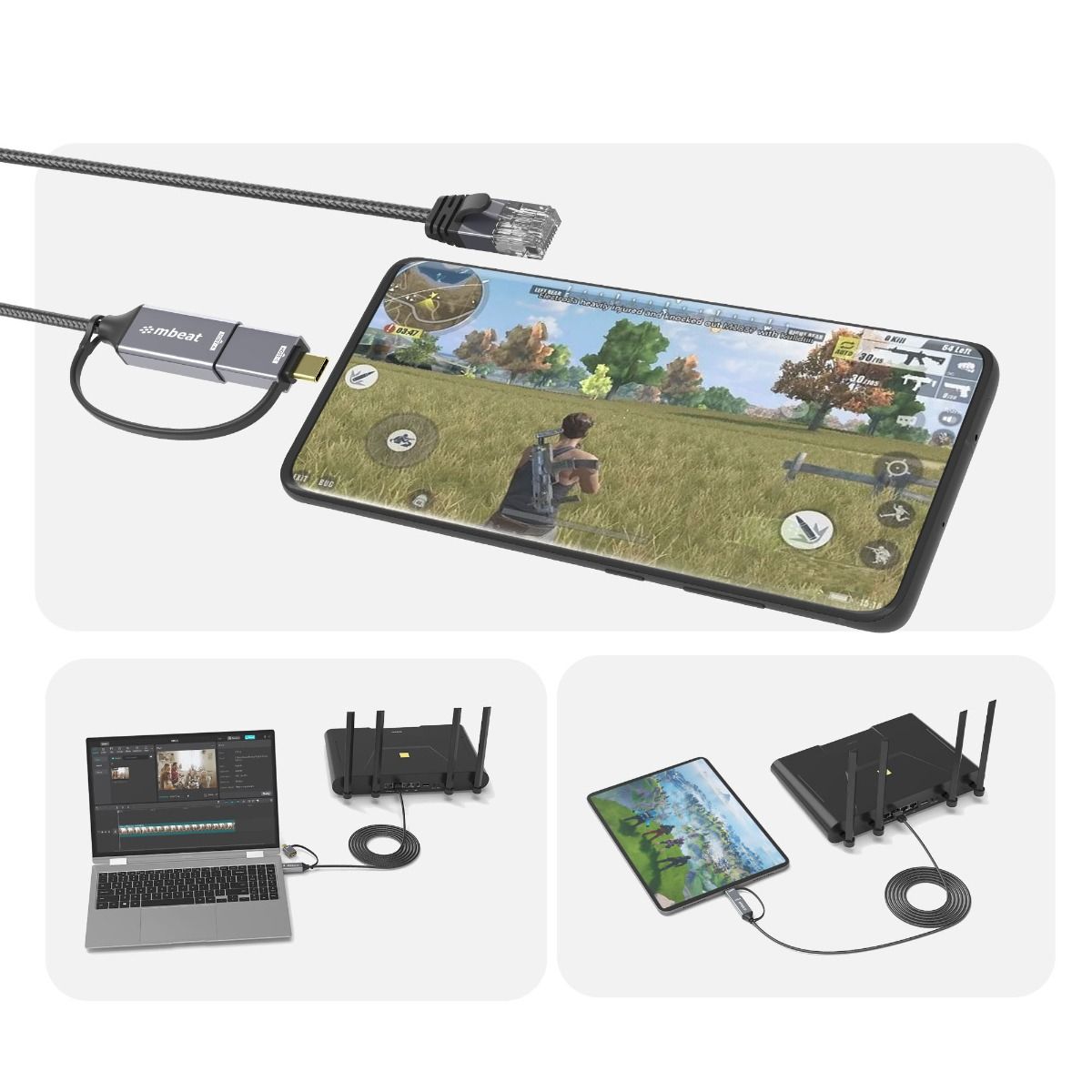 - 1 x 3-meter USB & USB-C to RJ45 Ethernet Cable