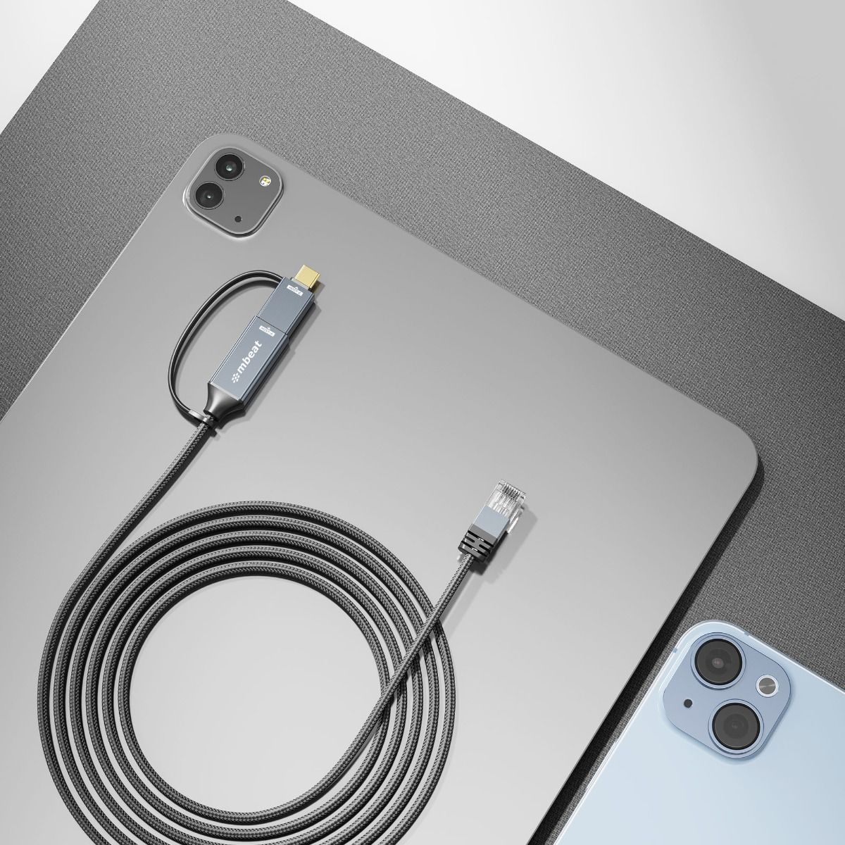 mbeat Tough Link 3m USB & USB-C to RJ45 Ethernet Cable – Space Grey