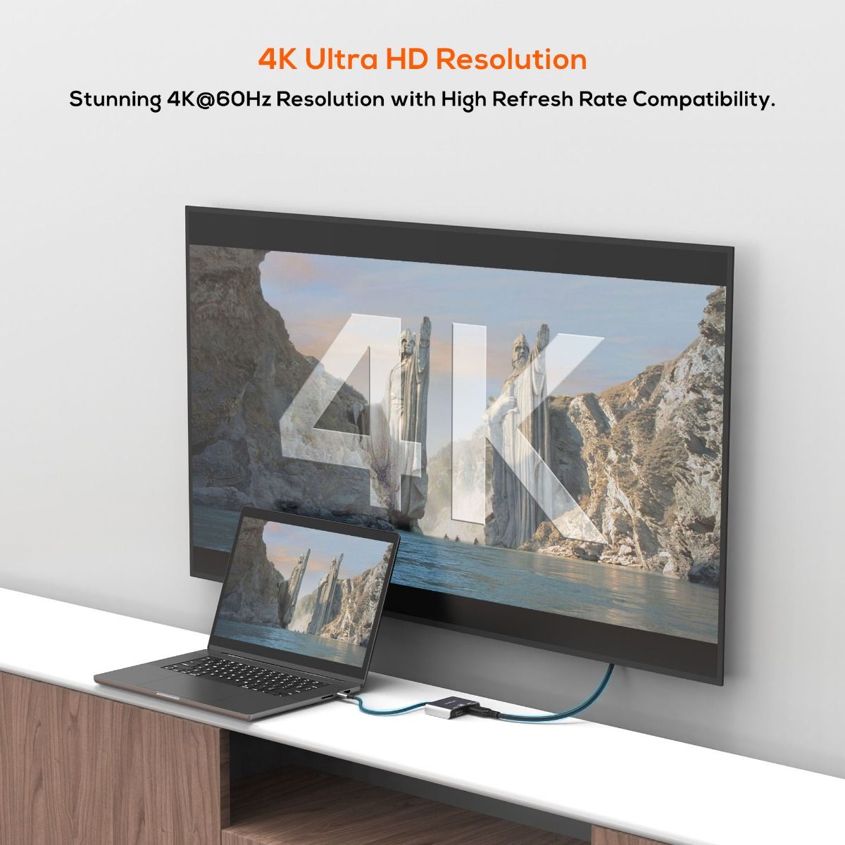• Supported Resolutions: 4K at 60Hz, 4K at 30Hz, 2K at 60Hz, 1080p at 60Hz