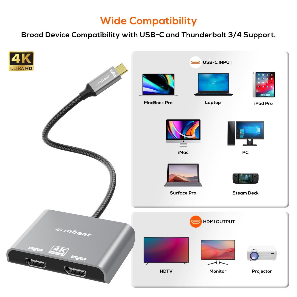mbeat Tough Link USB-C to Dual 4K/60Hz HDMI MST Adapter – Space Grey