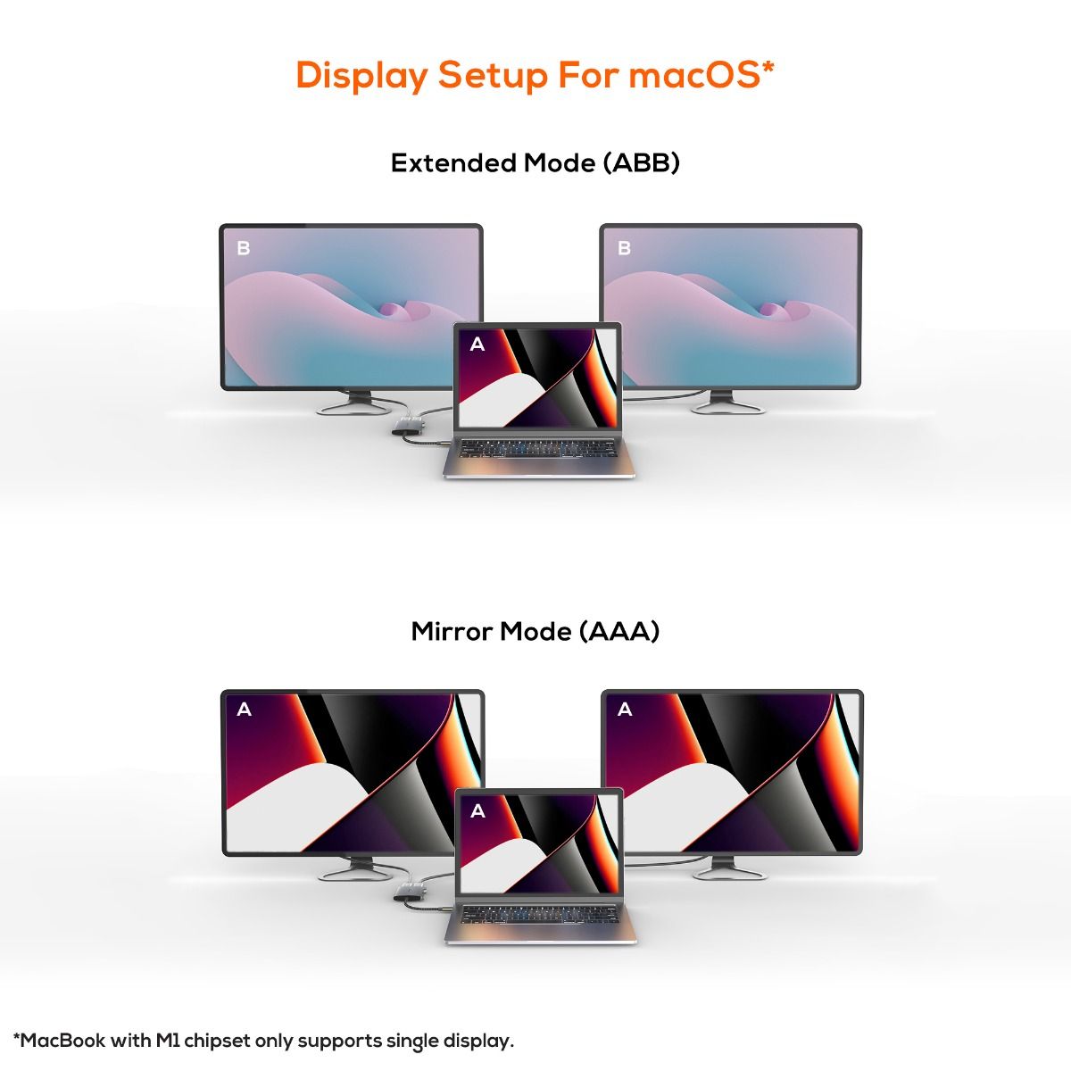 Note: macOS and iOS support only SST mode. Windows supports both SST and MST modes. MacBook with M1 chipset supports only a single display.