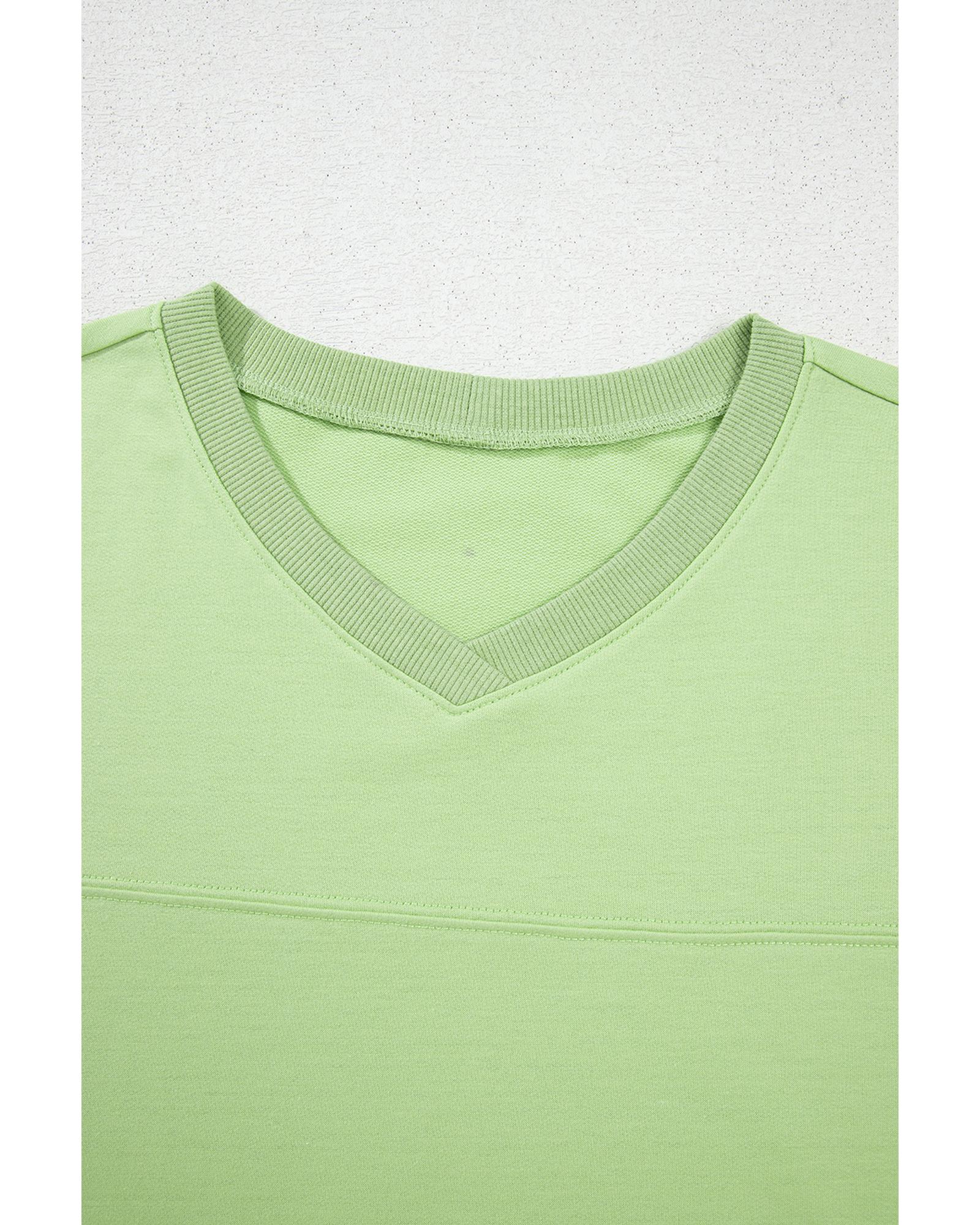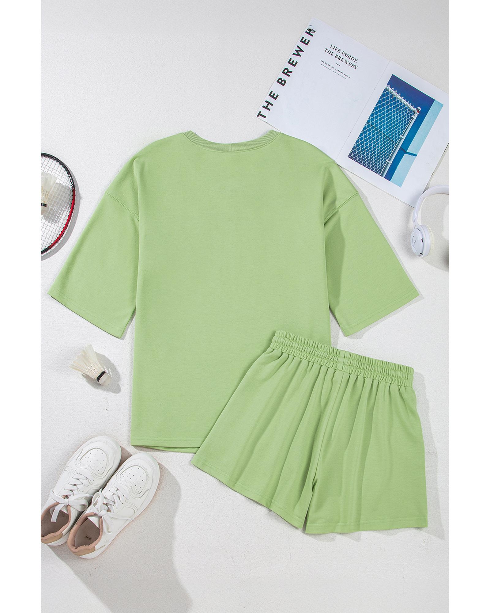 Meadow Mist Green Solid Loose V Neck Half Sleeve Tee and Shorts – M