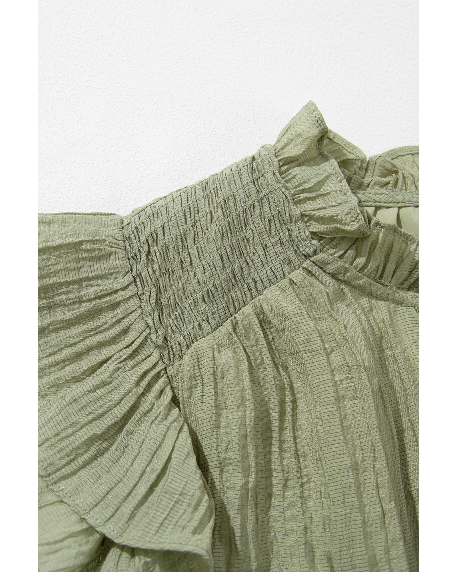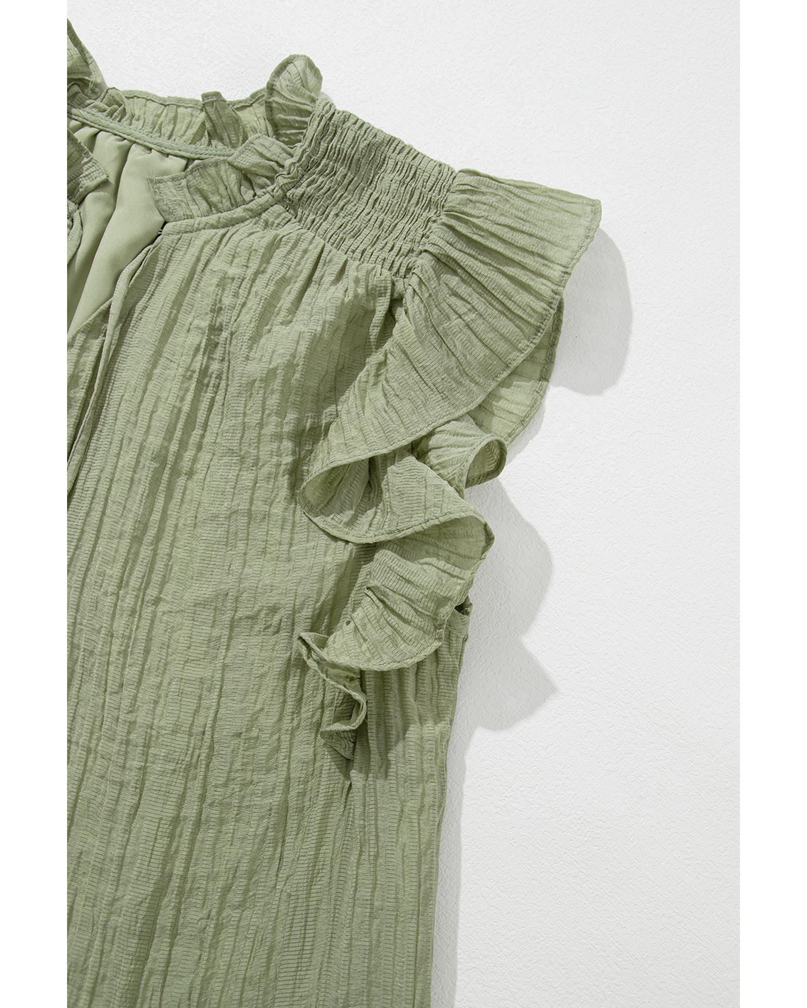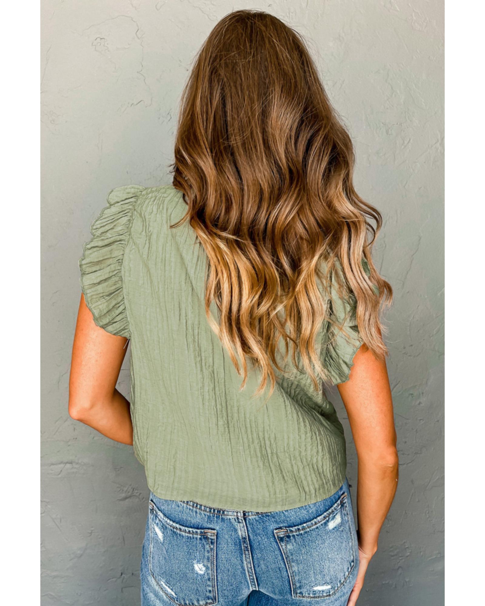 Meadow Mist Green V Neck Flutter Sleeve Textured Blouse – L
