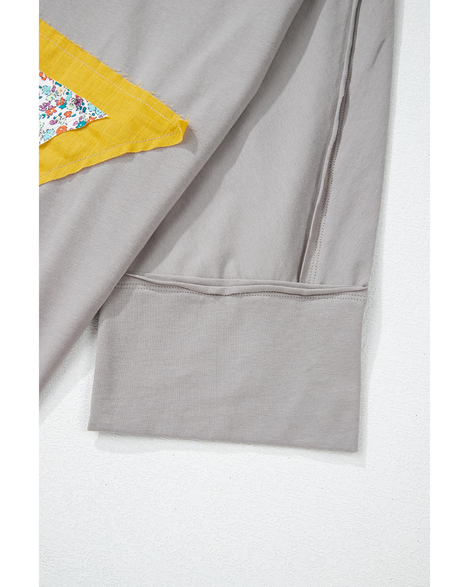 Medium Grey Floral Star Patched Pattern 3/4 Sleeve Plus Size Top – 1X