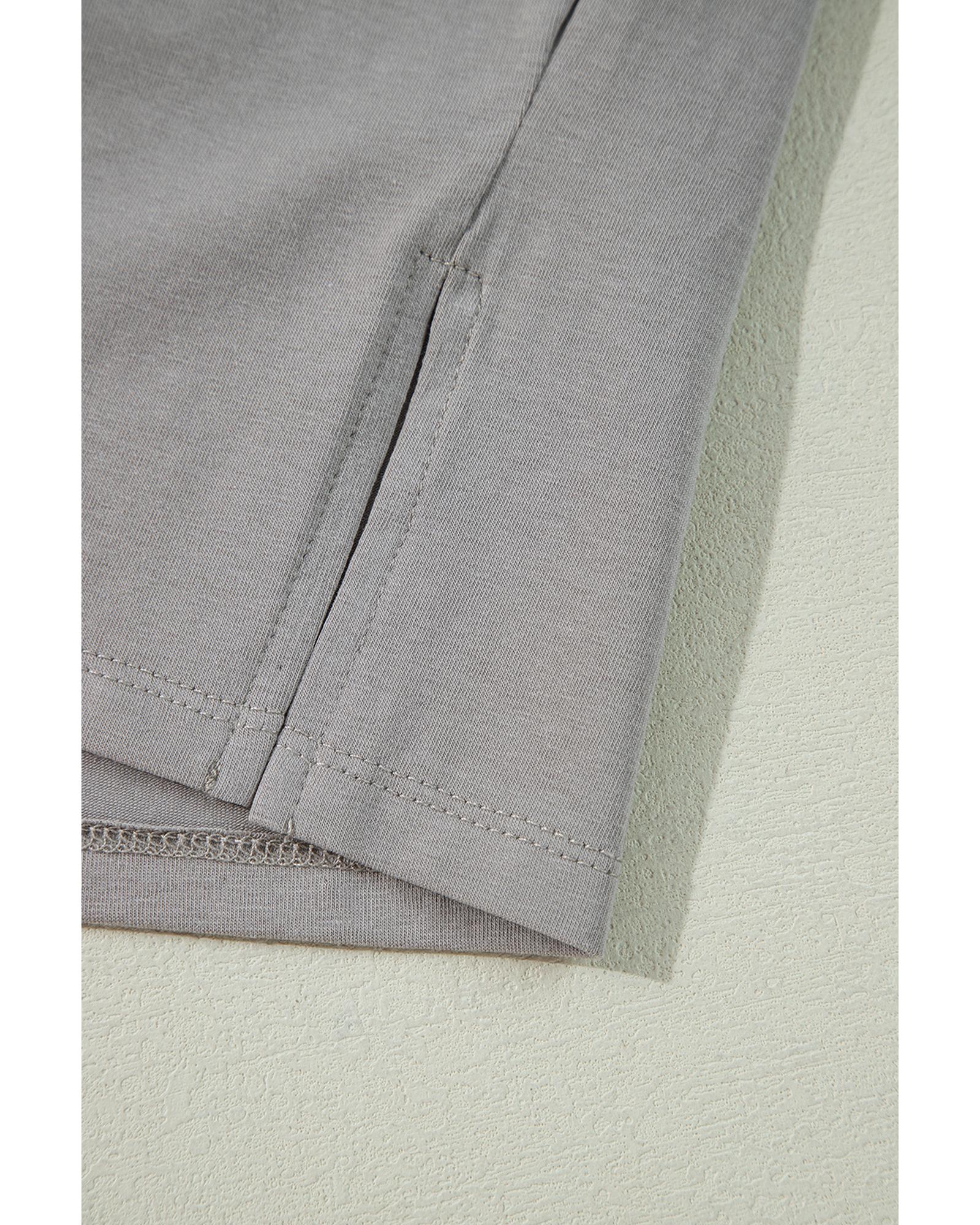 This plus size top features a trendy fitted design with a medium grey floral star patched pattern, making it a stylish addition to your wardrobe. It offers a comfortable fit with 3/4 sleeves, suitable for various occasions.