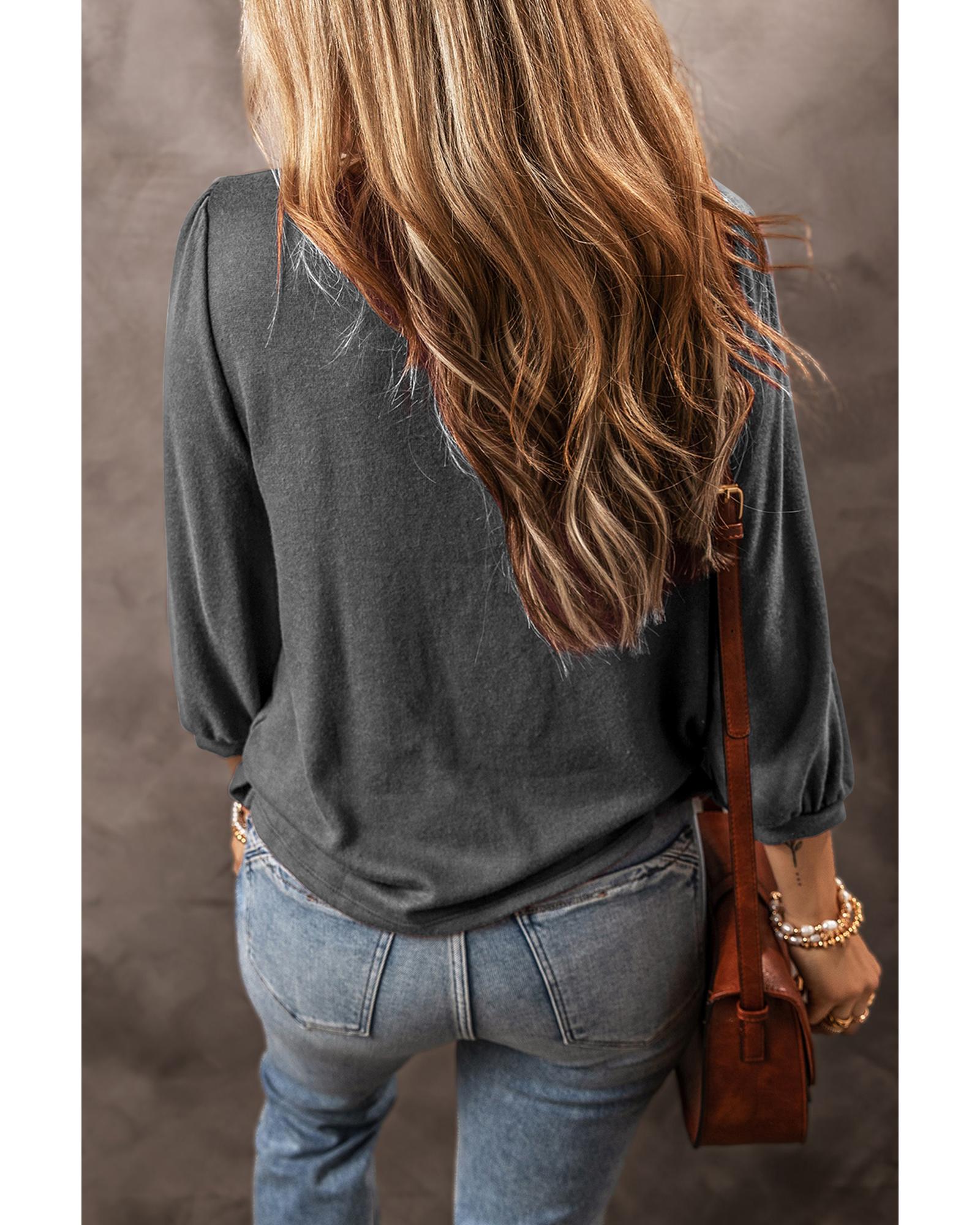 Medium Grey Solid Color 3/4 Sleeve Round Neck Blouse – L