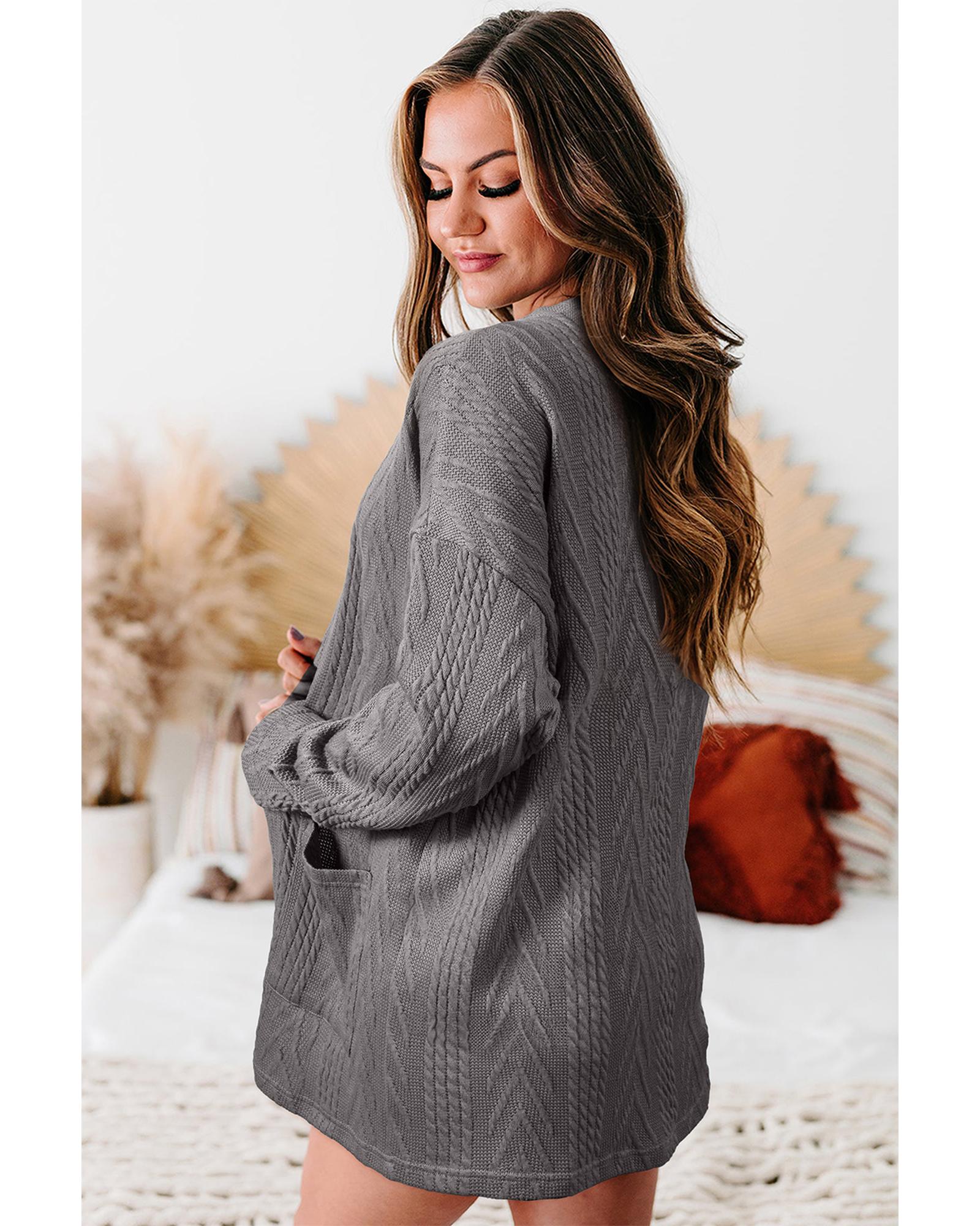 • 1 x Medium Grey Solid Textured Open Front Cardigan