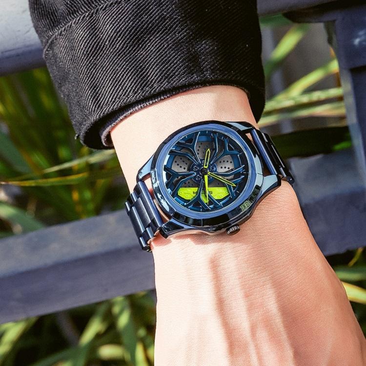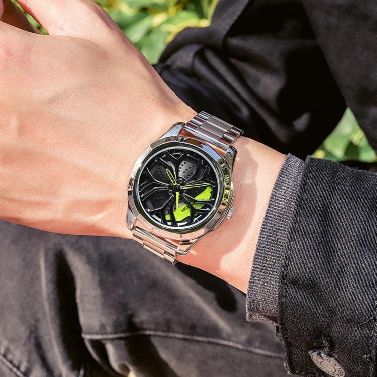 Men Casual Steel Band Quartz Watch – P1065 Wheel Series – Black Red