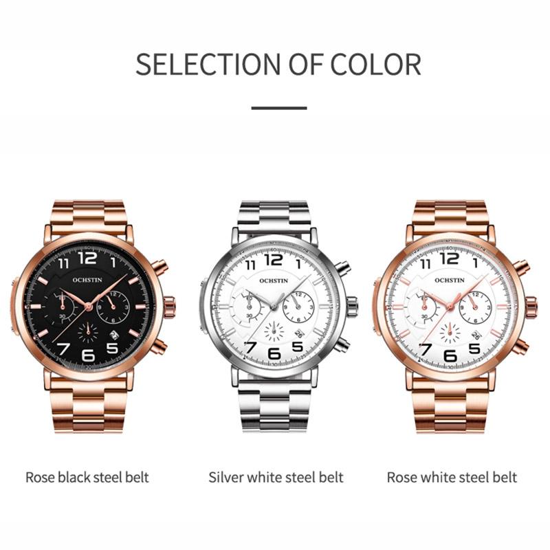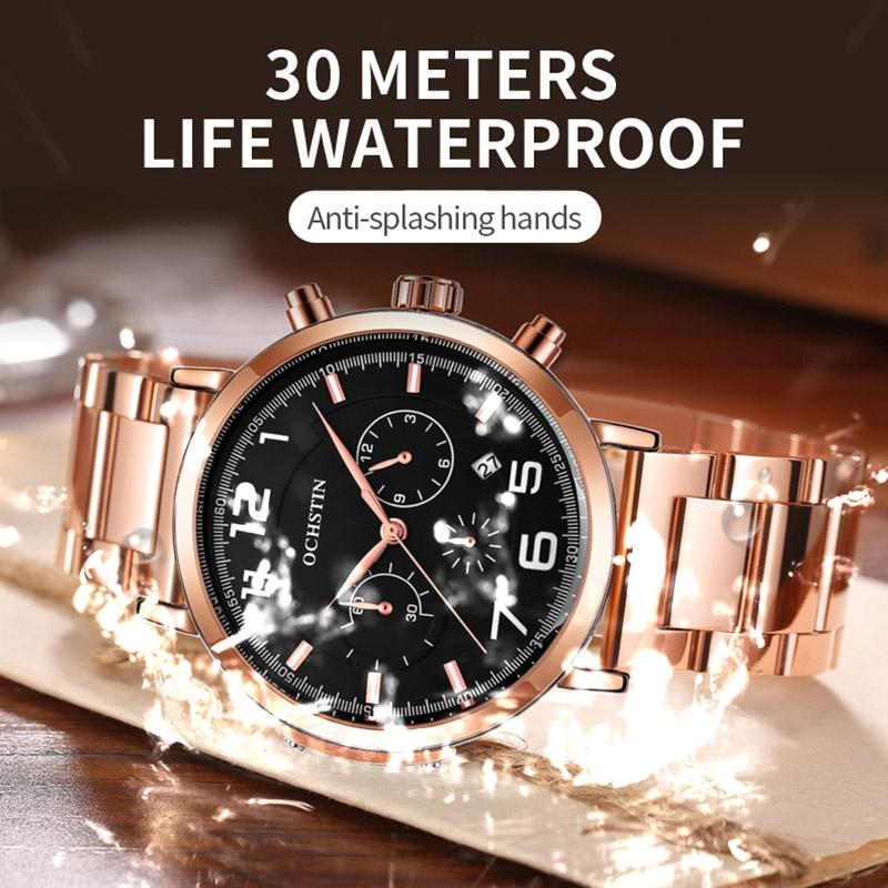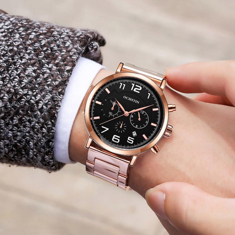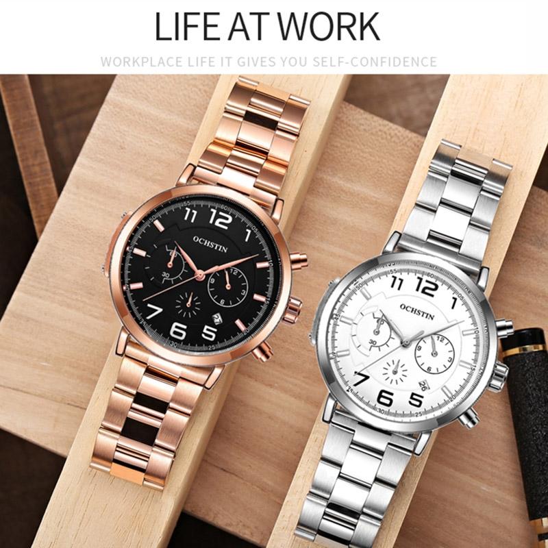 This men’s multifunction steel quartz watch features a classic design with a textured frame and a durable steel strap. It combines functionality with a stylish appearance, suitable for business and casual wear. The watch is built with high-quality materials to ensure longevity and reliable performance.