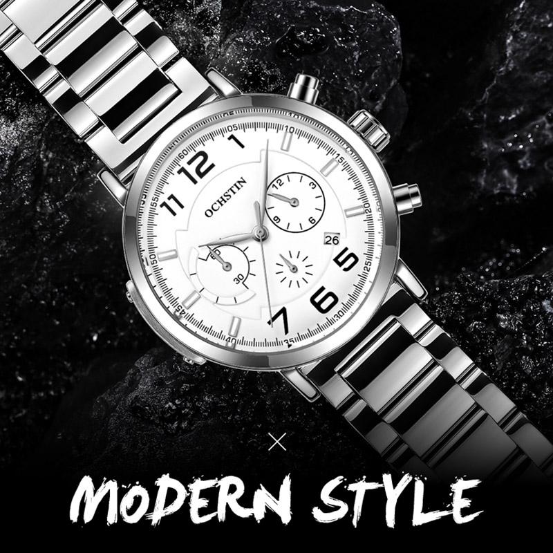 Men Multifunction Steel Quartz Watch with Steel Strap – Silver White