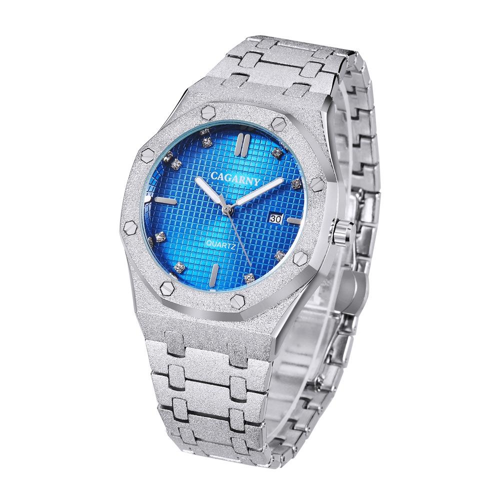 Men Quartz Steel Watch with Simple Stone Surface – Silver Shell Blue Surface