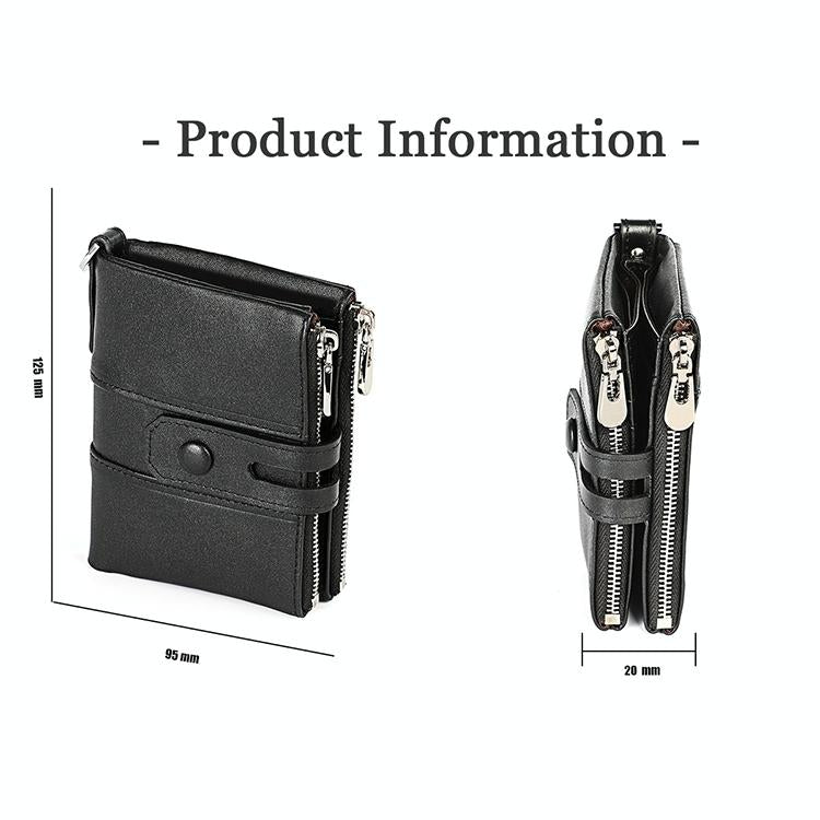 This men’s wallet features a retro textured design with a double zip closure, offering a stylish and functional accessory. Crafted from soft and durable leather, it provides multiple card slots and RFID protection to safeguard your personal information. Its lightweight and non-deformable construction makes it convenient for everyday use, available in various colors to suit your style.