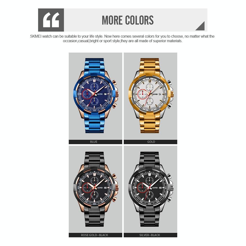 Men Stainless Steel Quartz Watch with Luminous Calendar and Timing – Rose Gold Black