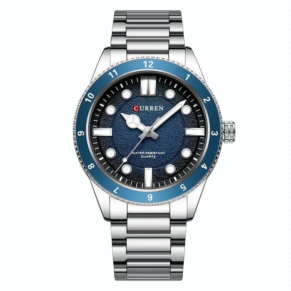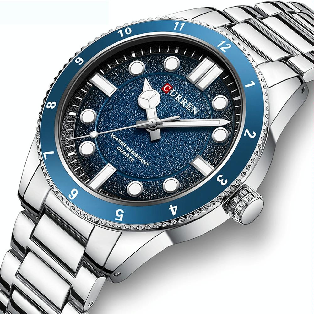 The package includes one men’s quartz watch with a steel strap, available in the selected option.