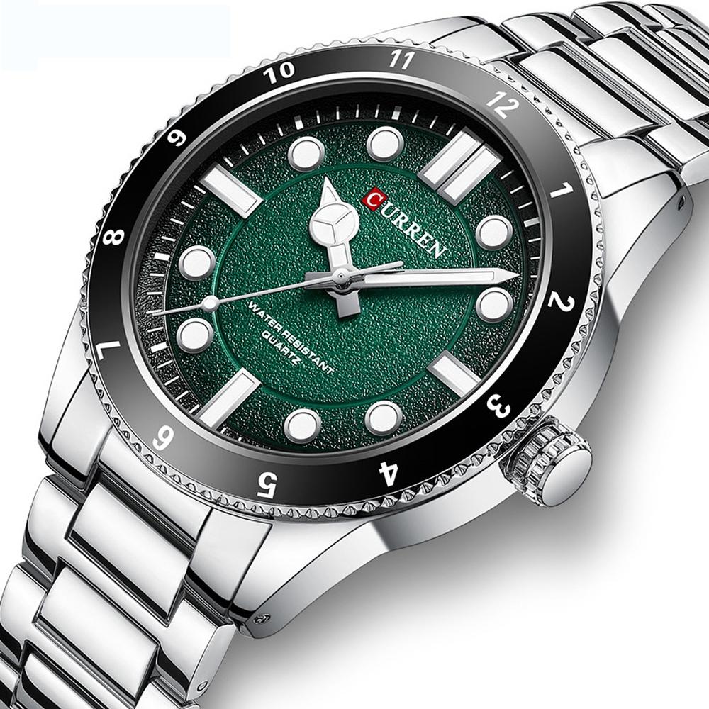 Men Steel Strap Business Quartz Watch – Sporty Design – White Shell Green