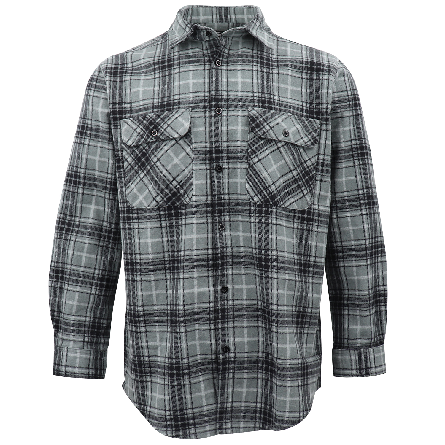 Men’s 100% Cotton Flannelette Shirt Long Sleeve Plaid Check Flannel w Pockets, Granite Gray Plaid, S
