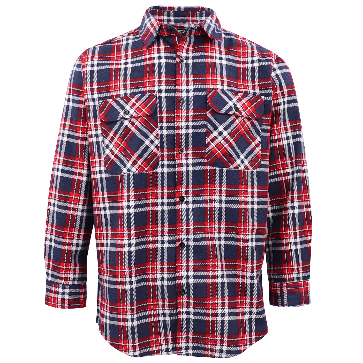 Men’s 100% Cotton Flannelette Shirt Long Sleeve Plaid Check Flannel w Pockets, Heritage Red Plaid, L