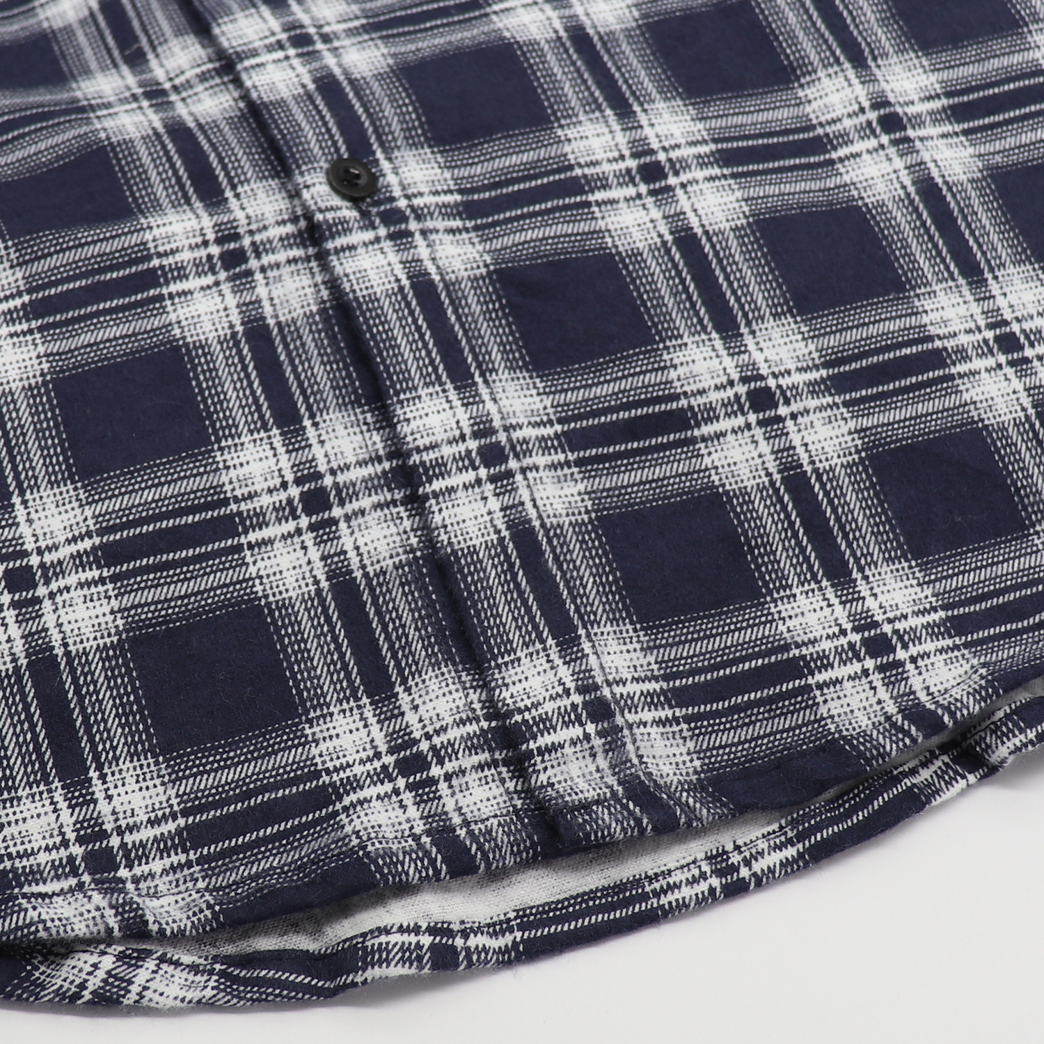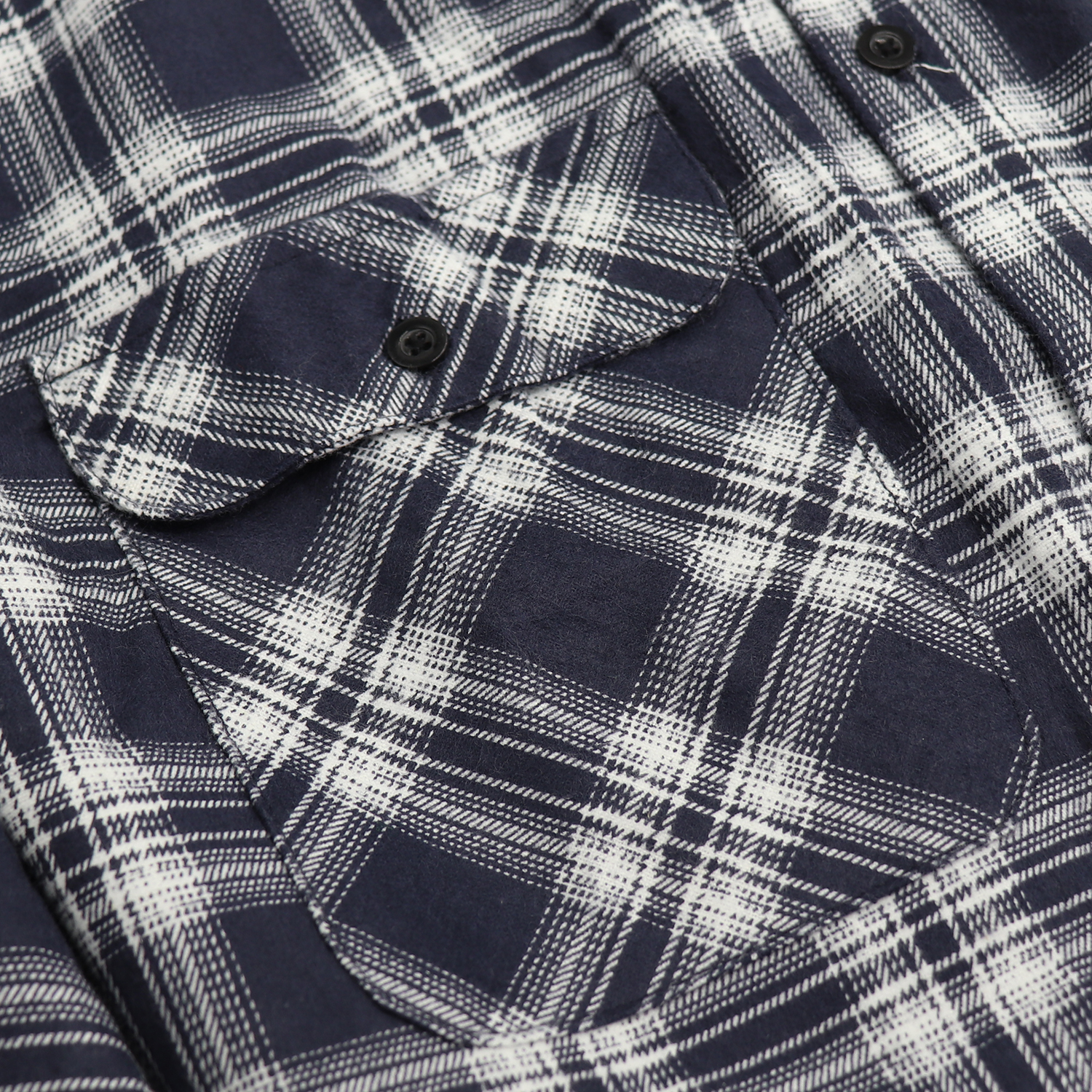 Product specifications include a long sleeve design, a check pattern, and chest pockets with button closures. The shirt is crafted from high-quality cotton flannel, ensuring durability and comfort.