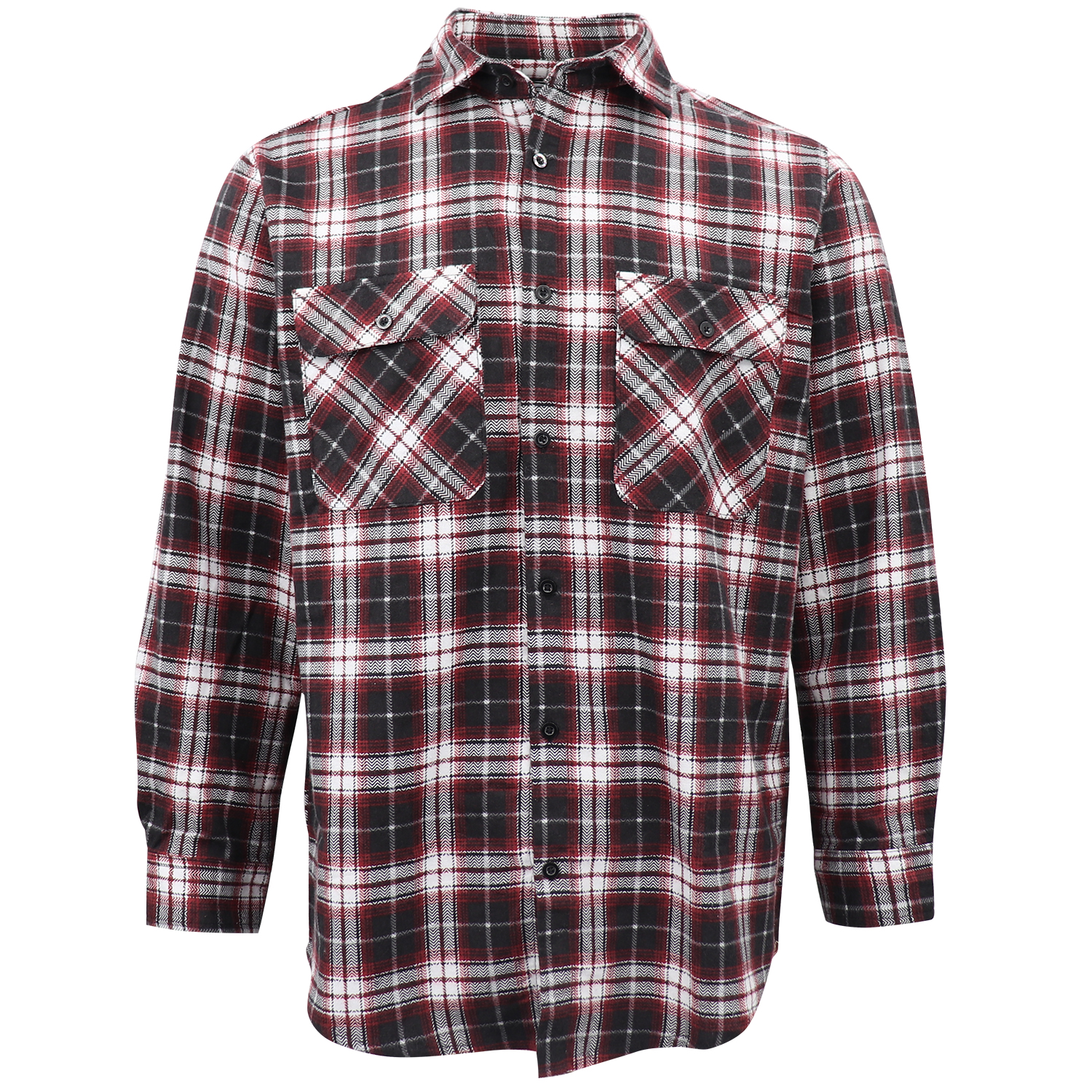 Product specifications include a long sleeve design, check pattern, and chest pockets with button closures. The shirt is crafted from high-quality cotton flannelette, ensuring durability and comfort.