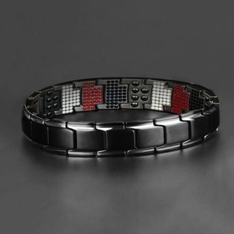 Mens Double Strong Magnetic Therapy Bracelet Arthritis Pain Relief Jewelry Au – Black Gold