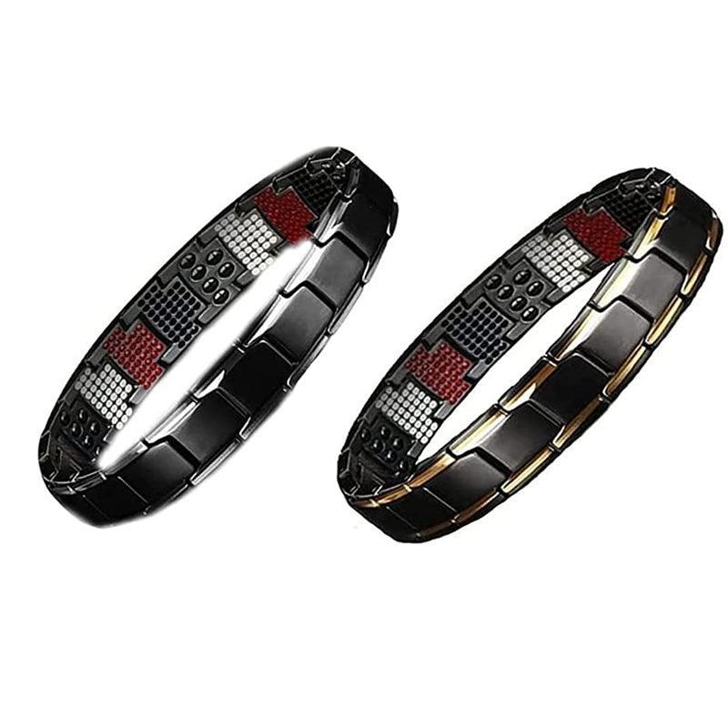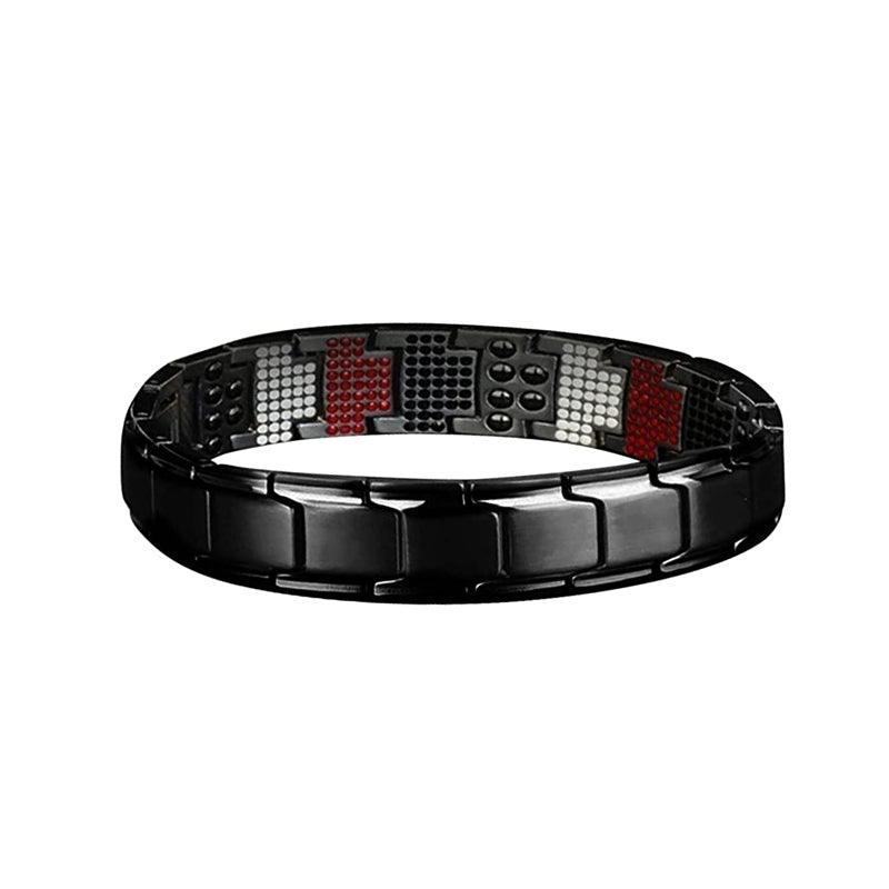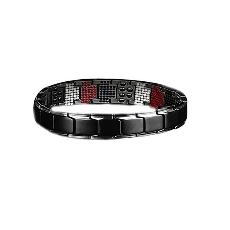 Mens Double Strong Magnetic Therapy Bracelet Arthritis Pain Relief Jewelry Au – Black Silver