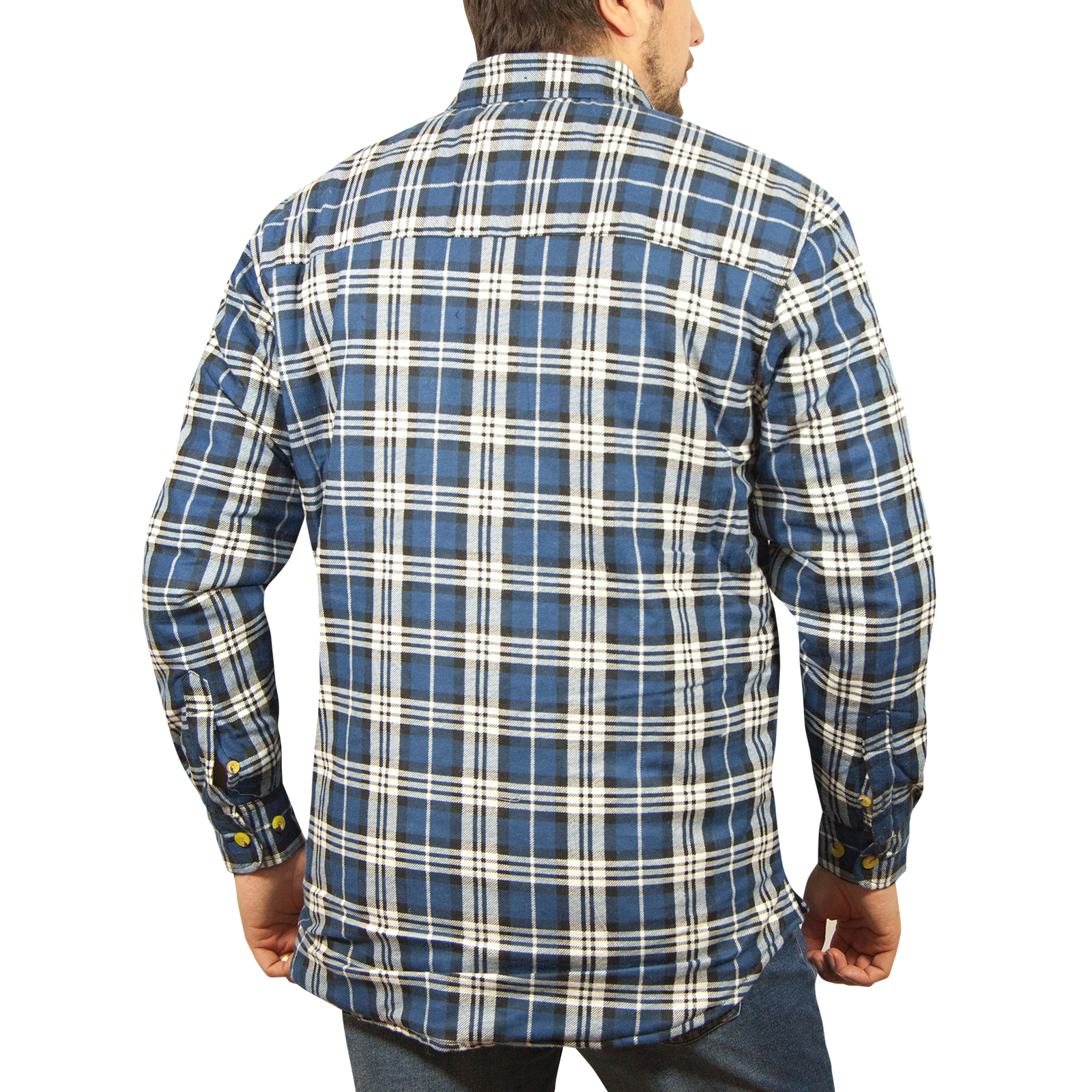 Mens Flannelette Long Sleeve Shirt 100% Cotton Check – Full Placket – Spanish Blue – L