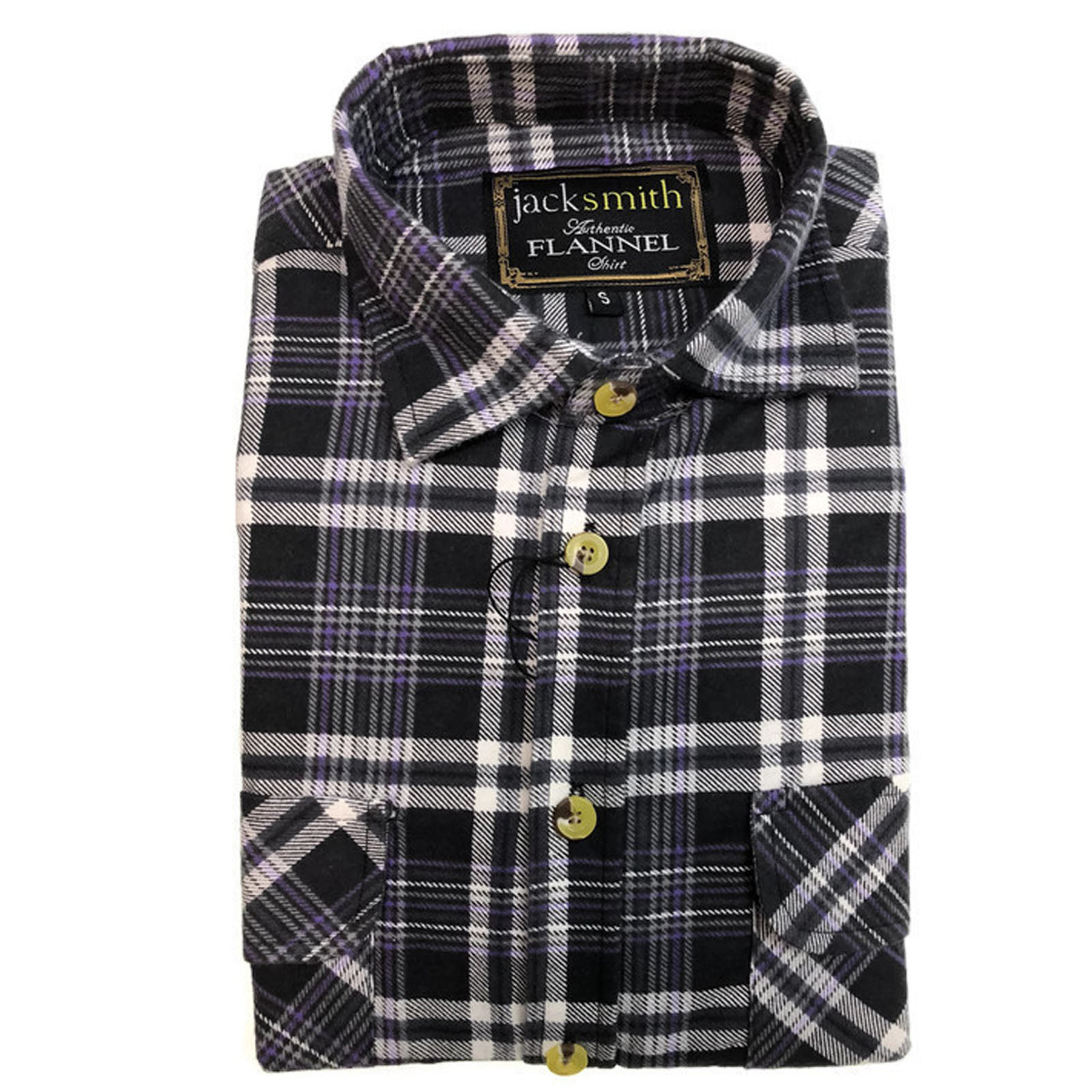 Mens Half Placket Flannelette Long Sleeve Pullover Shirt 100% Cotton Check Authentic Flannel – Black/Purple – S