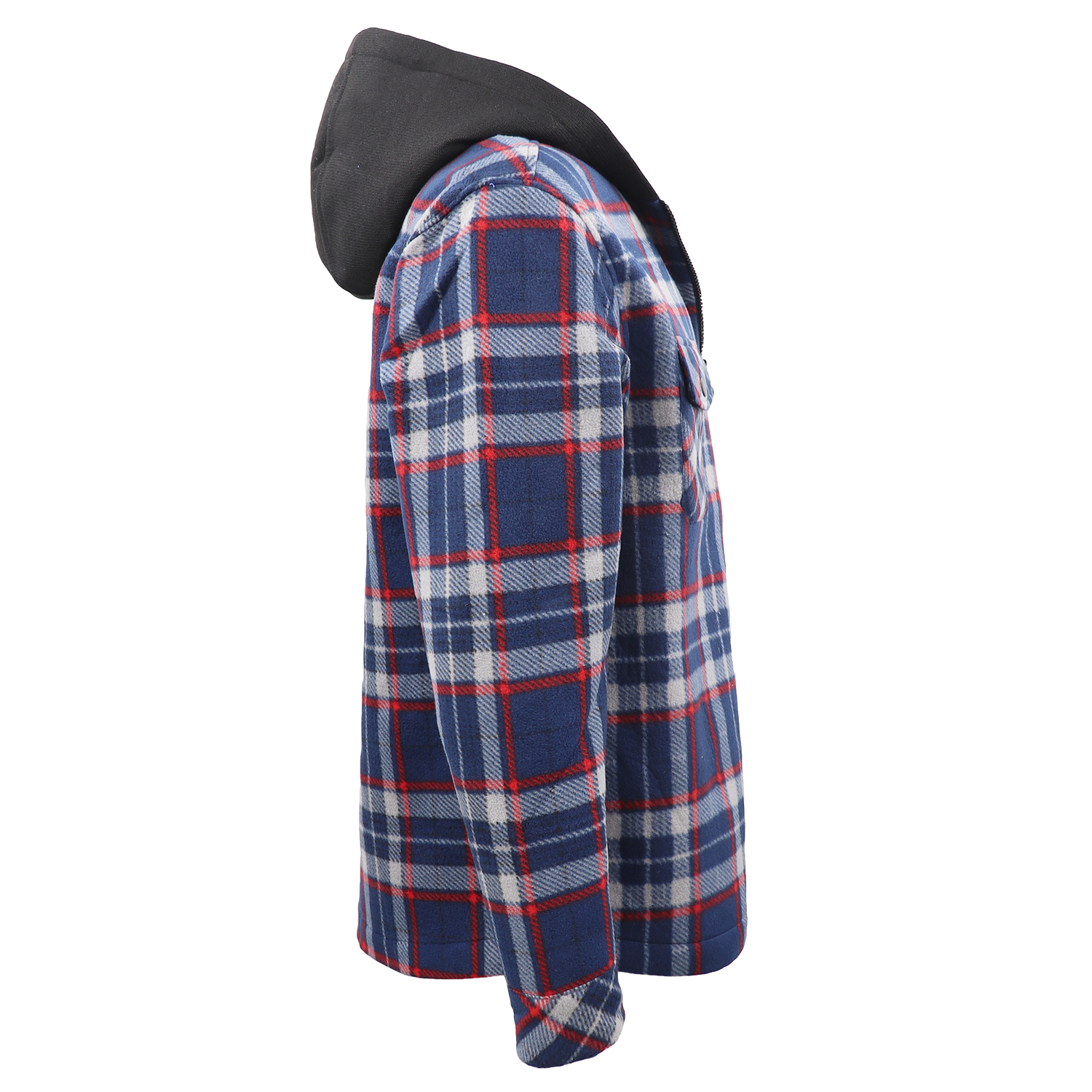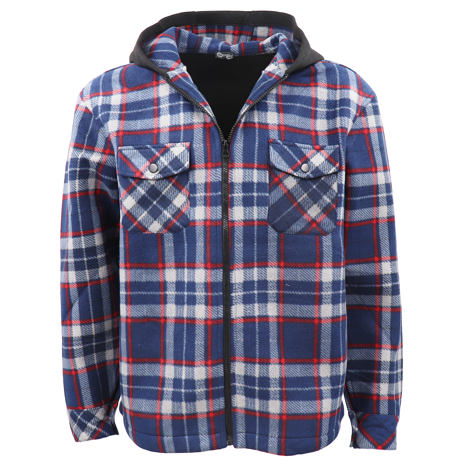 Men’s Hooded Flannel Jacket Flannelette Plaid Fleece Shirt Zip Up Winter Coat, Blue, 2XL