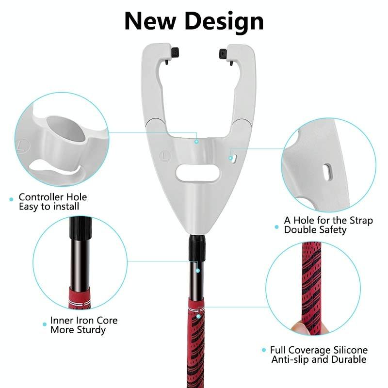 This product is an adapter designed for controllers, providing enhanced stability and security during use. It features a fixed handle on both sides, an internal iron core for realistic weight and durability, and a silicone cover with a textured bump for a non-slip grip.