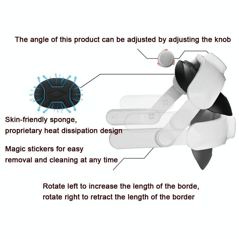 This adjustable VR head strap is designed to provide a comfortable and secure fit for your device. It features an adjustable angle for personalized comfort and is made from lightweight, skin-friendly materials to reduce pressure during extended use.