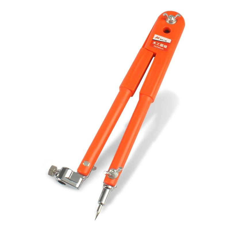 This metal compass is designed for woodworking decor and drawing applications. It features a durable construction with a steel tip and zinc alloy components, offering reliable performance for various projects. The compass includes an adjustable rotary switch to modify the pen length, and is made from insulating and impact-resistant polypropylene plastic. It is available in two radius options, small and large, providing versatility for different drawing needs. Its sleek and lightweight design makes it easy to handle and suitable for both professional and hobbyist use.