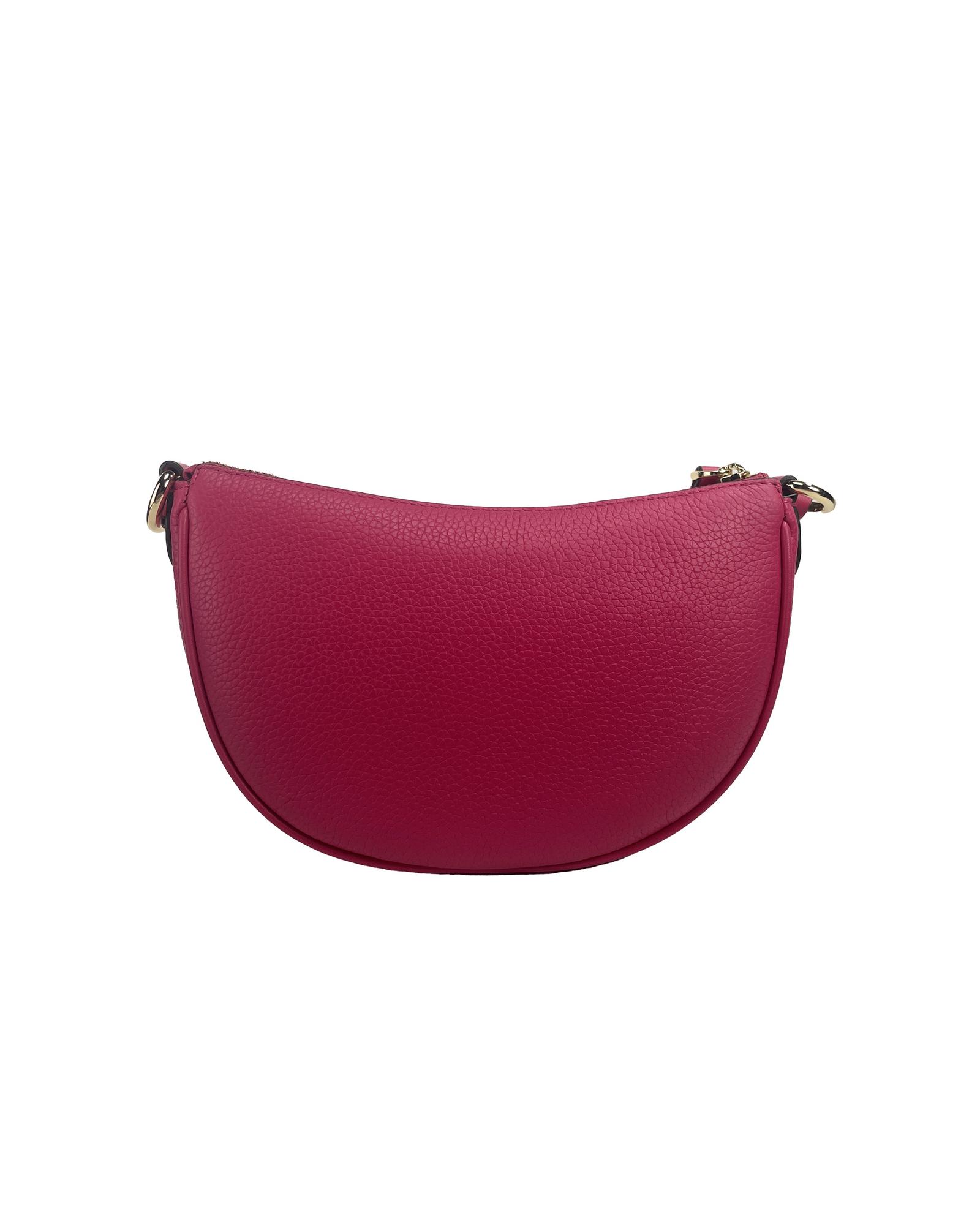This small crossbody bag features a stylish design with a vibrant pink color, perfect for adding a pop of color to any outfit. Crafted from durable pebbled leather, it combines fashion with functionality, making it suitable for everyday use or special occasions.