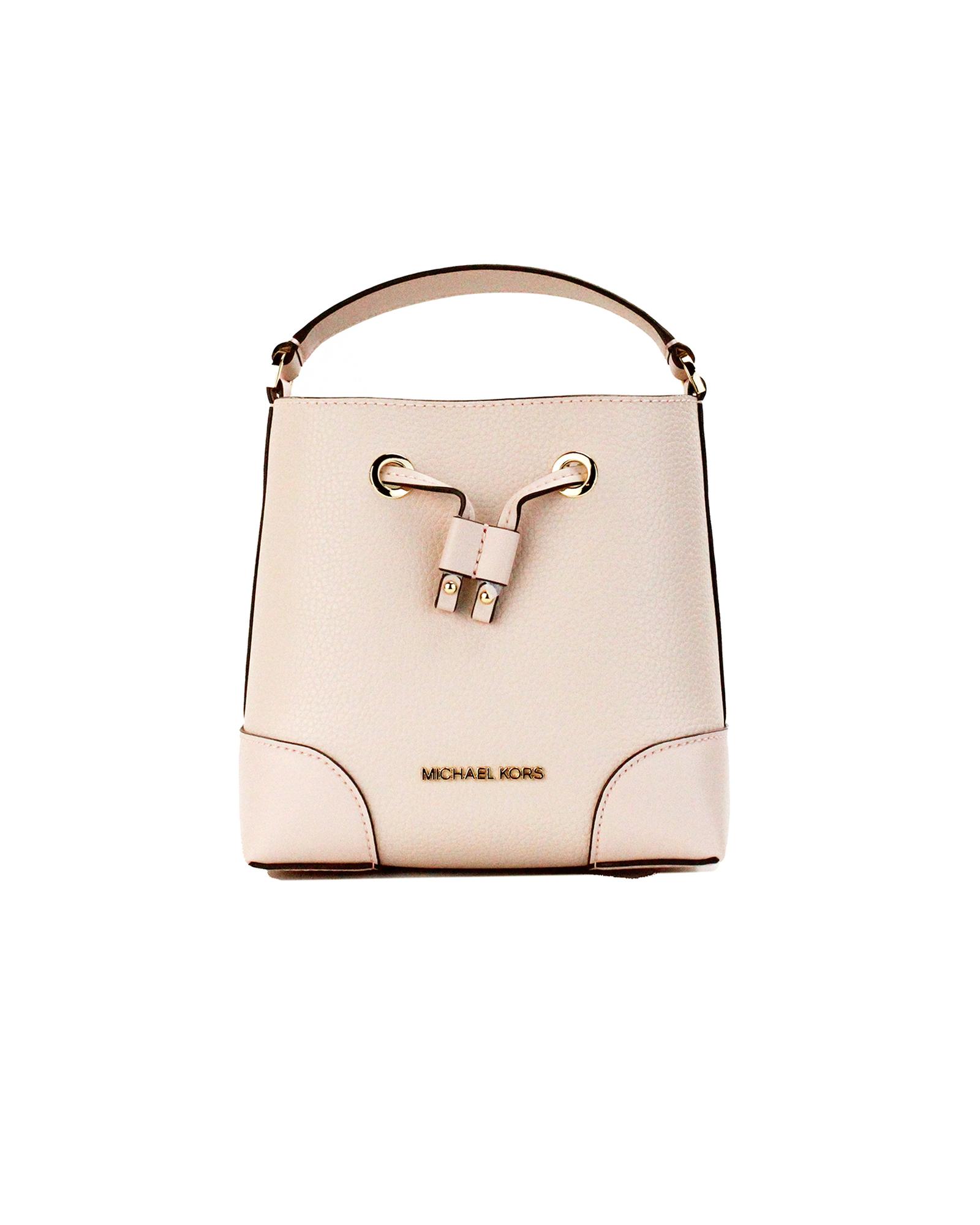 Michael Kors Women’s Mercer Small Powder Blush Pebble Leather Bucket Crossbody Bag Purse – One Size