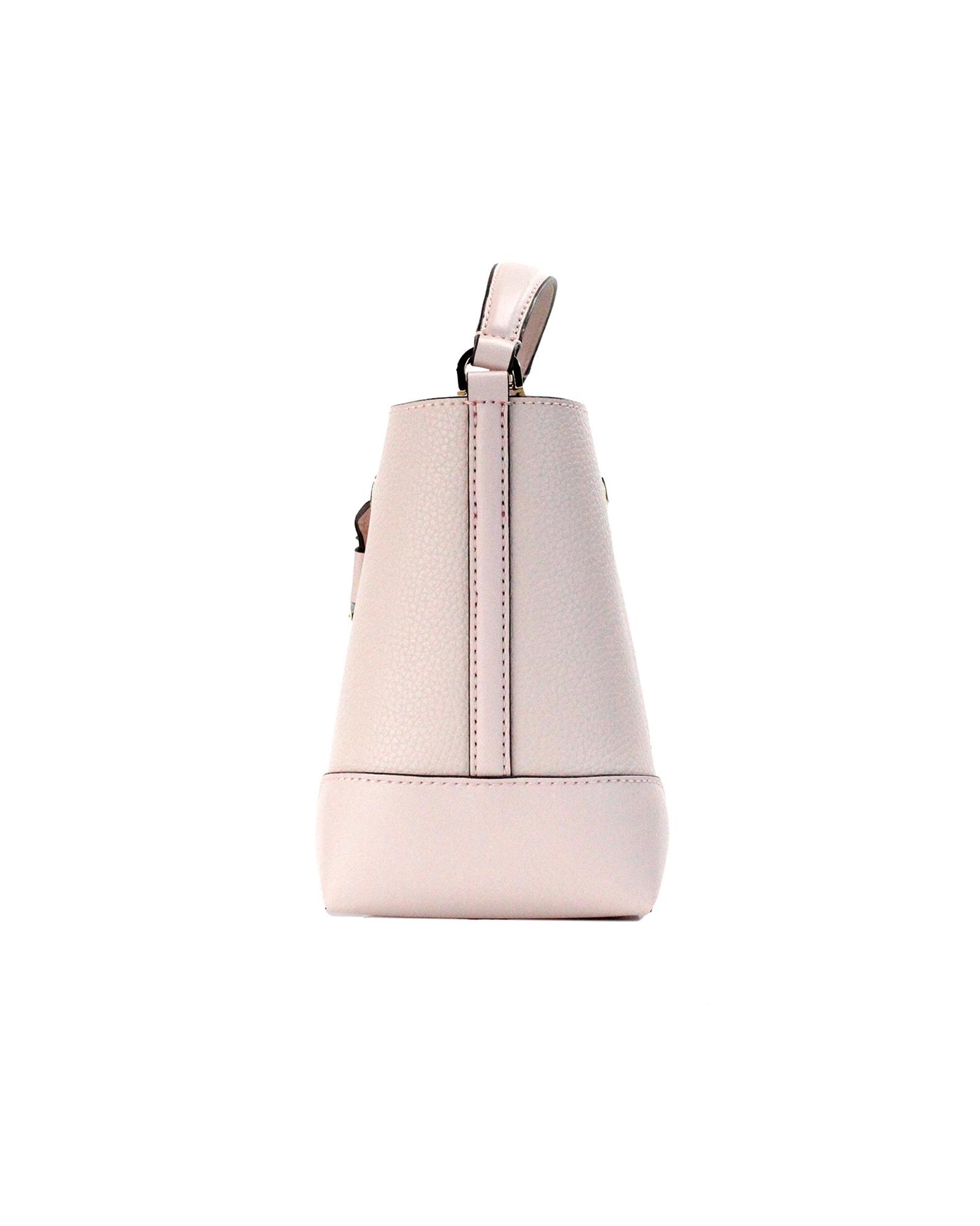 - Style: Small bucket drawstring handbag in powder blush