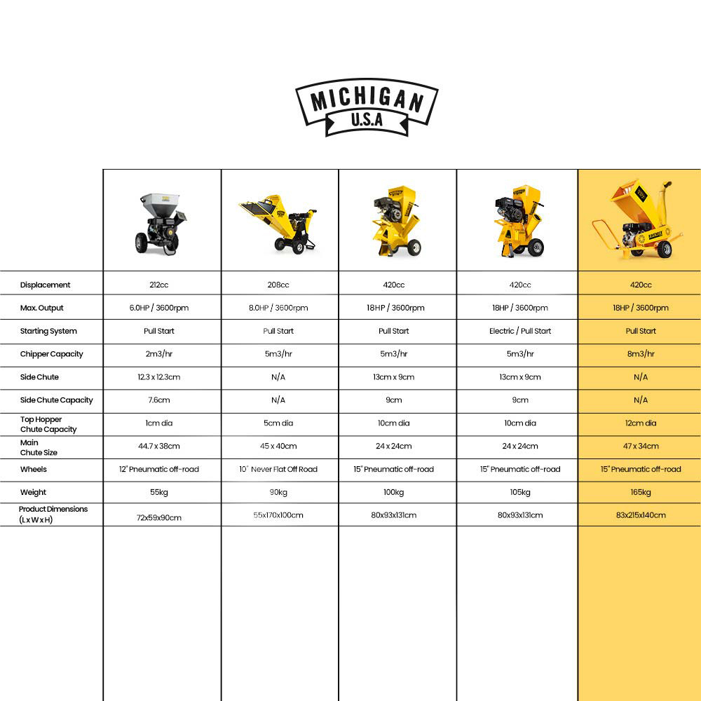 MICHIGAN 18HP 420cc Petrol Commercial Wood Chipper, Towable, Tree Mulcher – Ravenger 1950