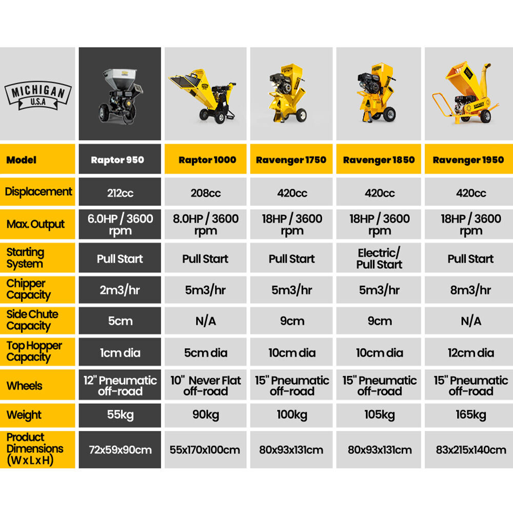 MICHIGAN 7HP 212cc Petrol Commercial Wood Chipper Shredder, Tree Mulcher – Raptor 950