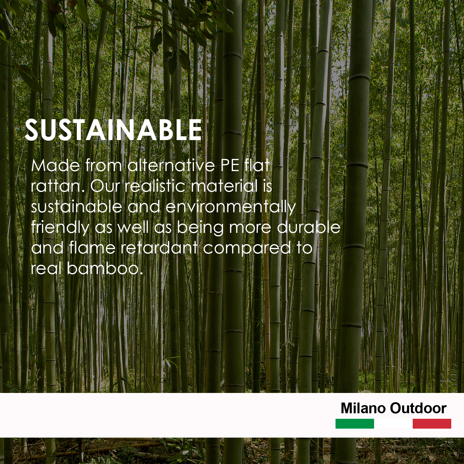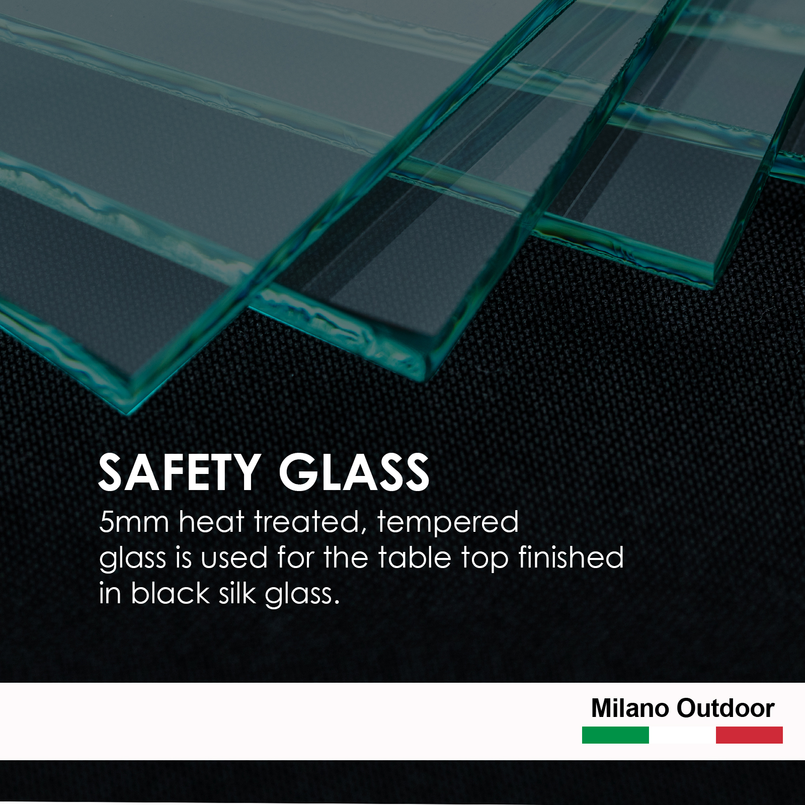 - Materials: PE wicker rattan, steel, polyester, tempered glass