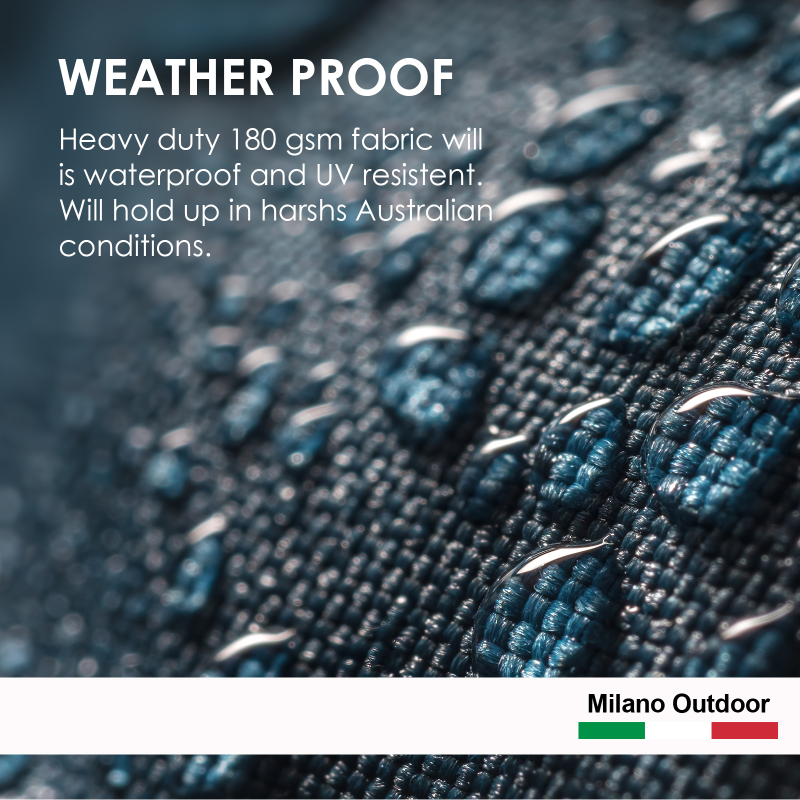 - Plush foam seat cushions upholstered in waterproof, easy-to-clean polyester fabric