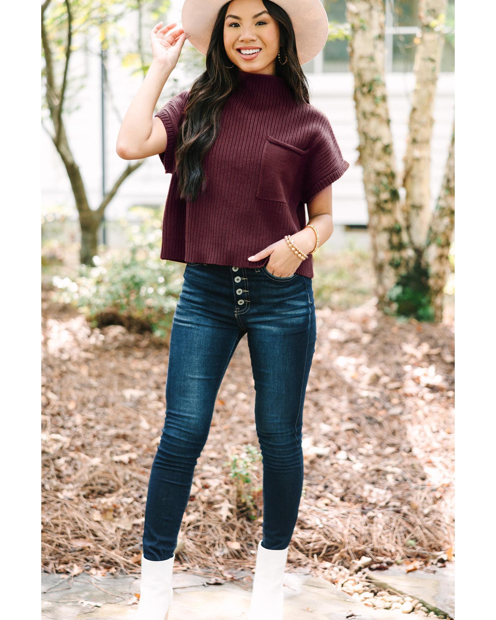This Mineral Red Patch Pocket Ribbed Knit Short Sleeve Sweater combines a trendy fitted design with comfortable, high-quality materials. It features a ribbed knit texture and short sleeves, making it suitable for warmer weather. The sweater includes functional patch pockets on the front, adding both style and practicality.