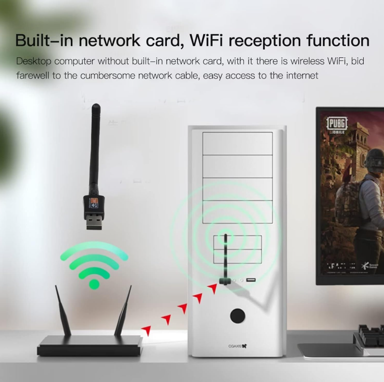 This USB WiFi adapter provides high-speed wireless connectivity with dual-band support, allowing you to enjoy fast and stable internet connections on your PC, laptop, or Mac. Its compact design and high-gain antenna make it suitable for long-range use and easy setup.