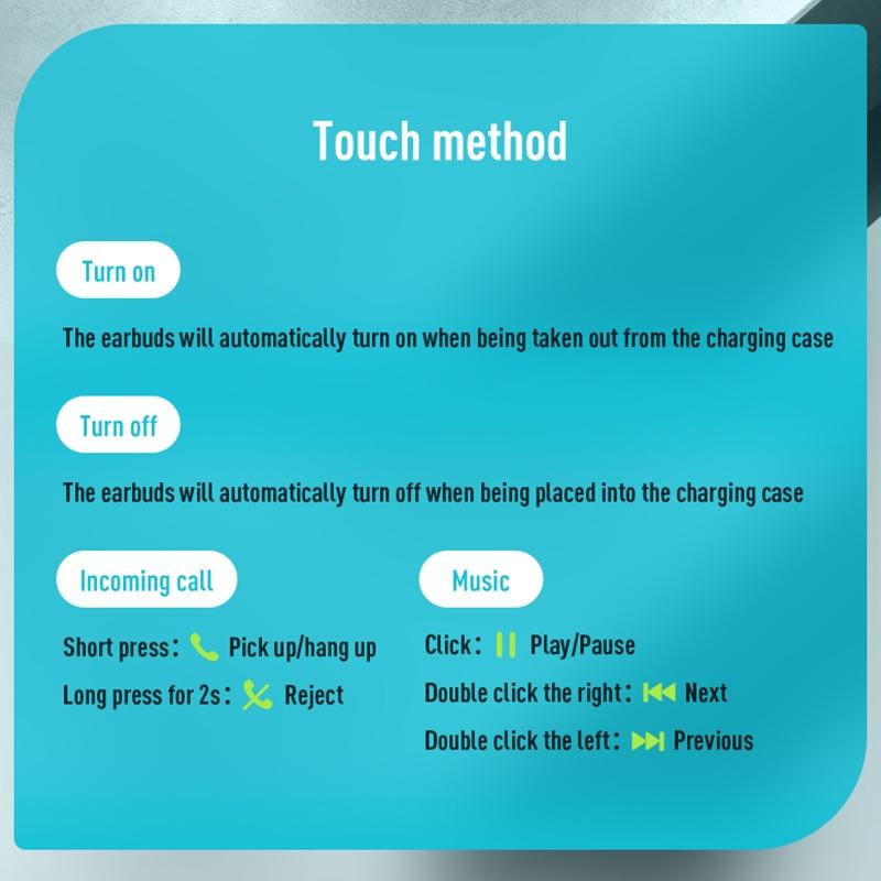 This set of mini Bluetooth earphones features a magnetic charging box and offers high-quality sound with HiFi audio. They support automatic pairing and connection for both left and right earphones when removed from the charging case. The earphones can be used individually or together, with automatic charging and power-off once fully charged. An LED digital display indicates the remaining power level. Designed to be lightweight and compact, they provide a comfortable and nearly invisible wearing experience.