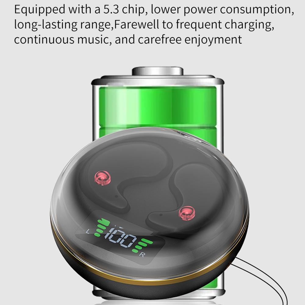 This mini invisible Bluetooth earphone set features a slim and lightweight design for comfortable wear, even when lying on your side. It includes a large capacity charging case that provides extended battery life and reduces power consumption. Equipped with the latest Bluetooth V5.3 chip, it offers improved transmission efficiency, a stable connection, and smooth audio quality.